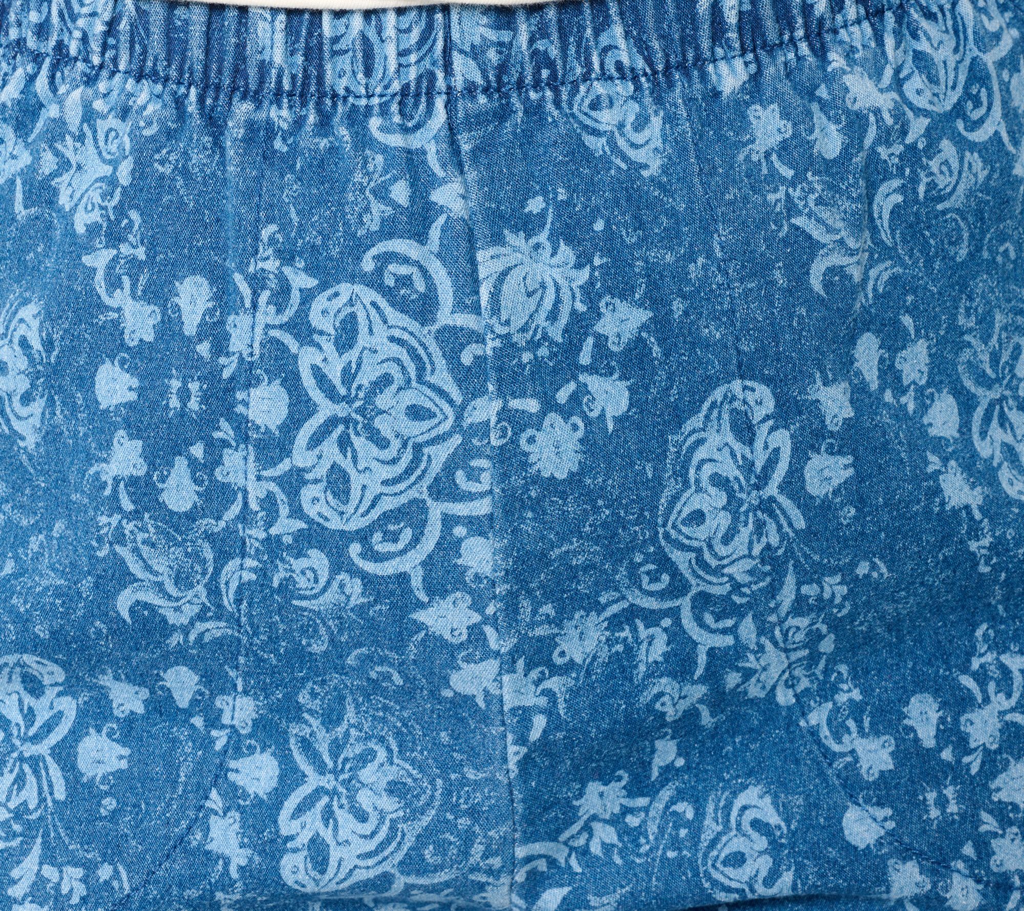 Prints that perk up your everyday? Yes, please. These full-length pants bring playful panache to errands or afternoon strolls, with a printed denim style, plenty of stretch for flexible movement, and an easy pull-on waistband. Stash your must-haves in roomy side pockets and enjoy comfortable coverage all day, any day. From Denim & Co.® Fashions.