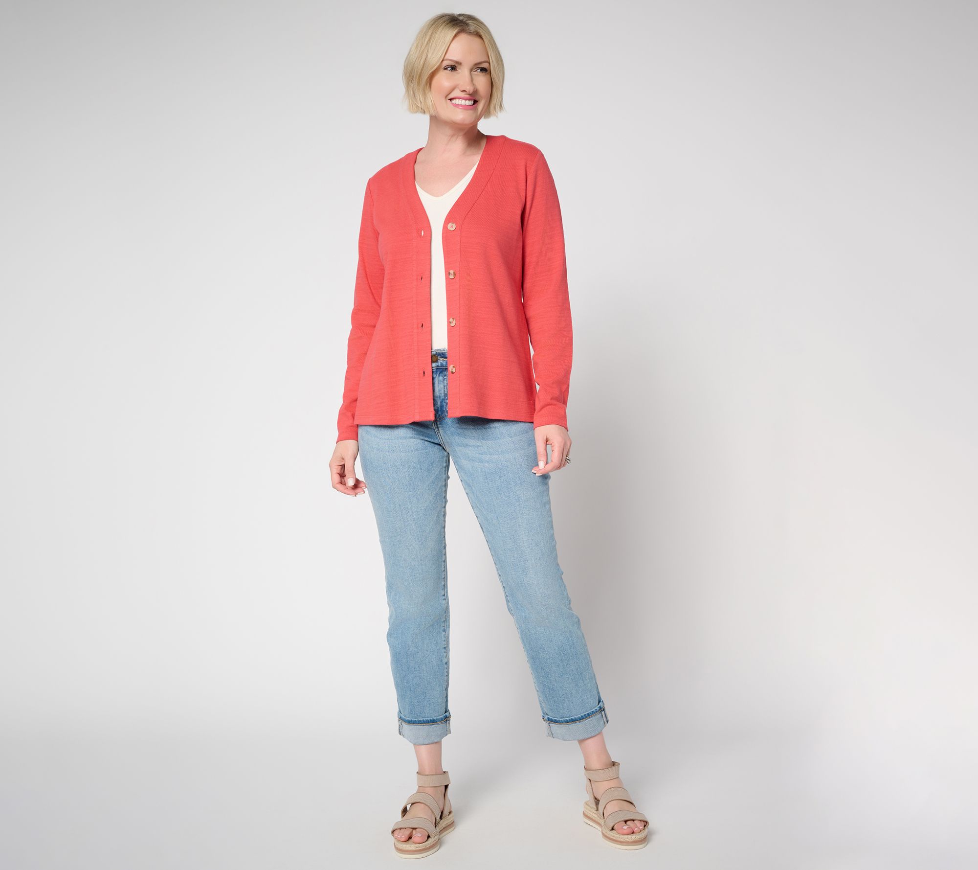 Denim & Co. Textured Cotton Long Sleeve Button Front Cardigan