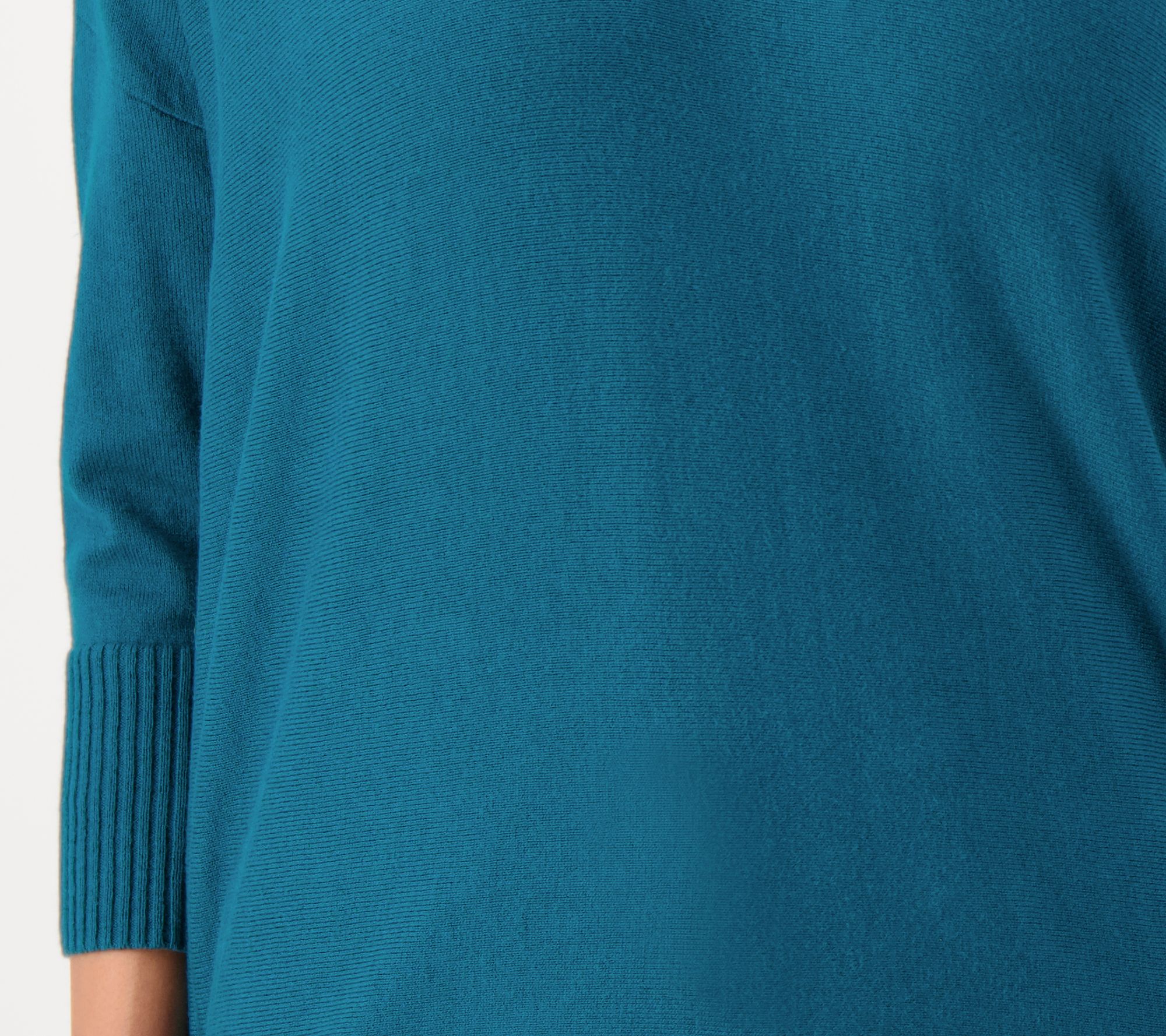 • Features: V-neck, dolman 3/4-length sleeves, pullover style, rib trim and cuffs, drop shoulder, flatback rib at cuff, side slits