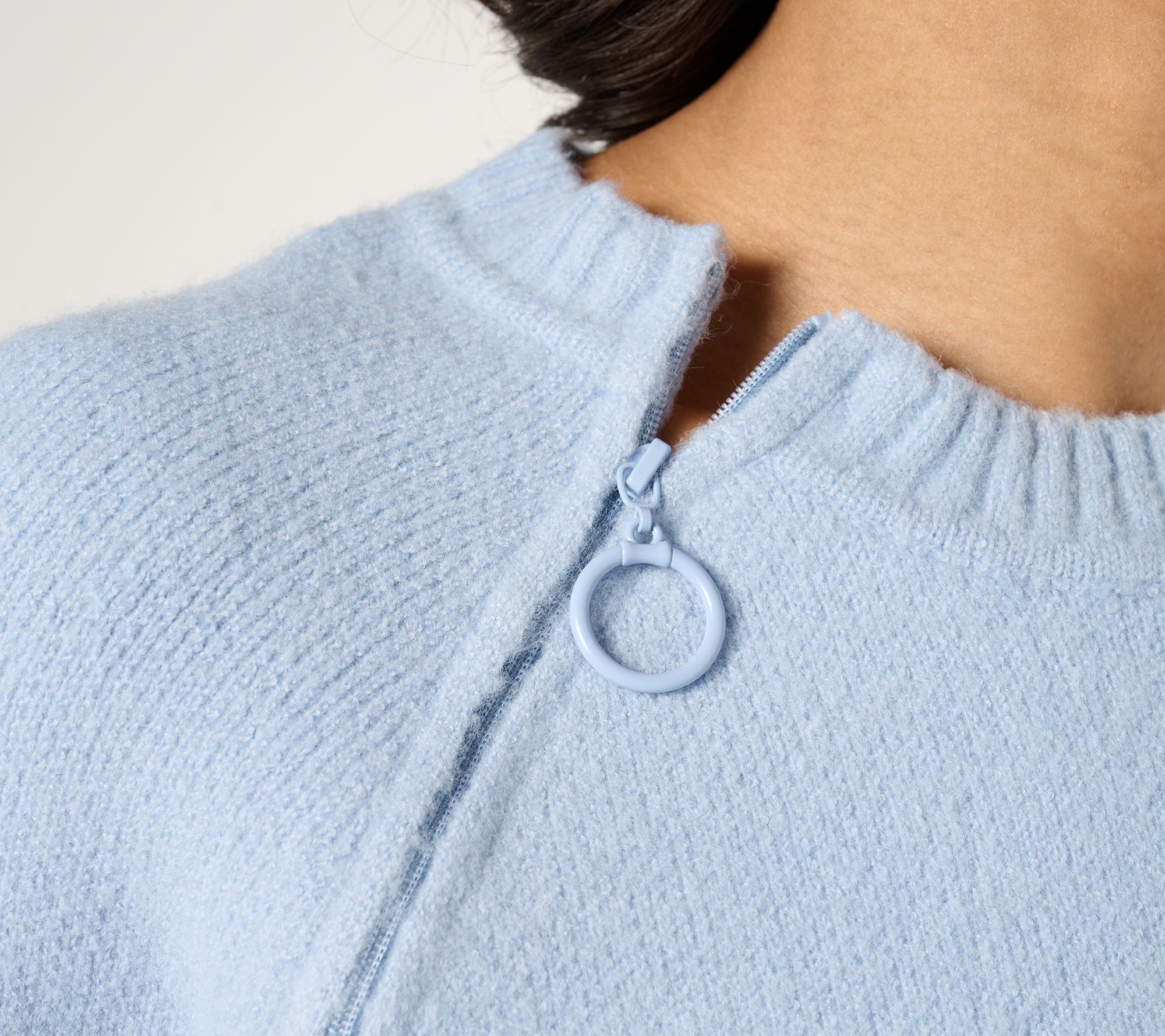 Style with a view! Let the scenic design of this softly knit sweater reflect what you love, whether you're spending the day dreaming by the fire, exploring a snow-dusted trail, or welcoming company. In this adaptive style, a zipper at the neckline aids dressing. From Denim & Co.® Fashions.