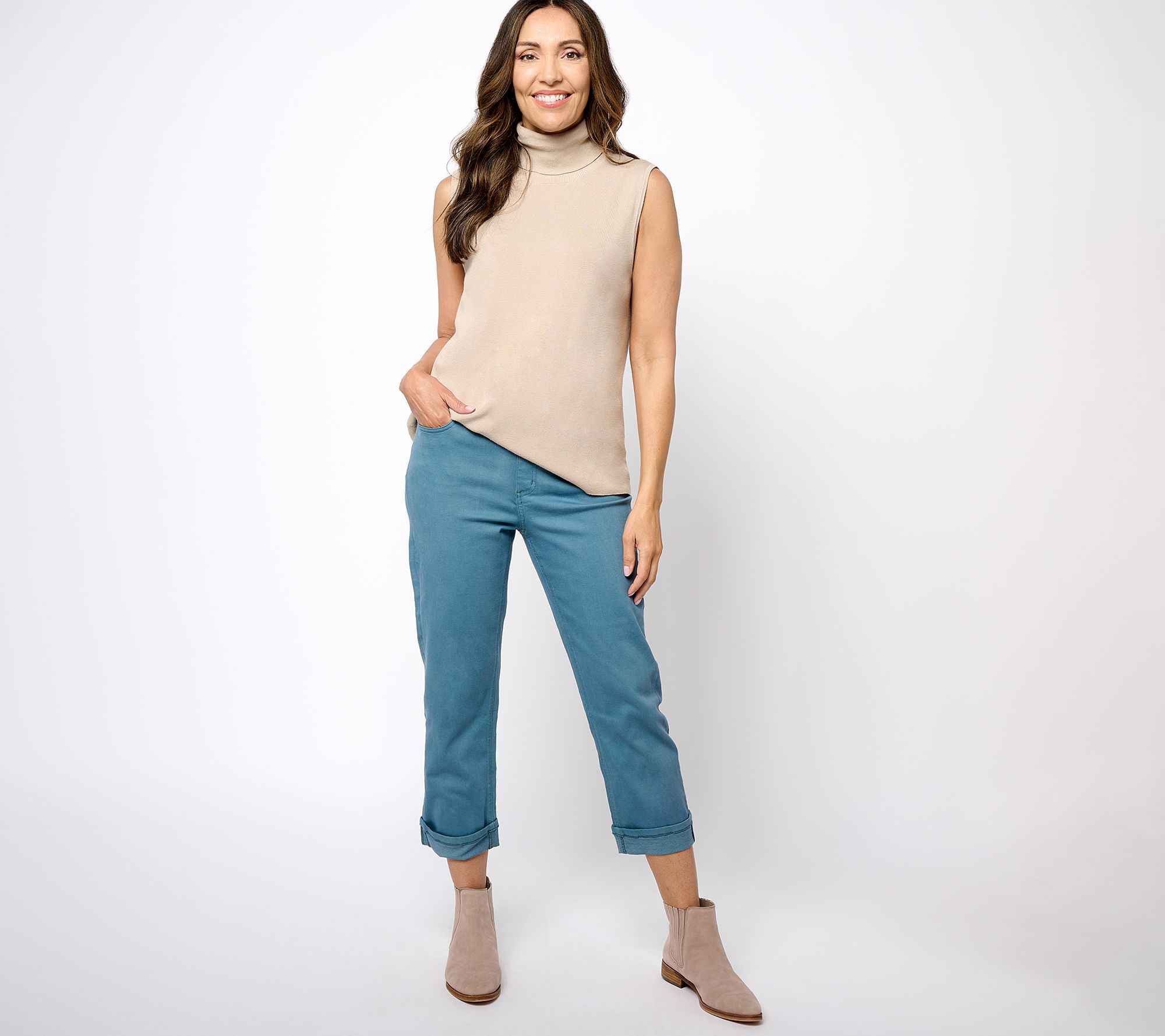 Denim & Co. Easy Stretch Denim Petite Easy Fit Crop Jean