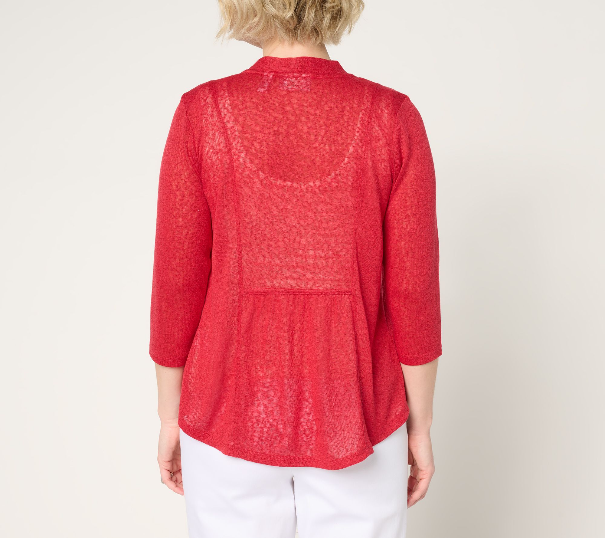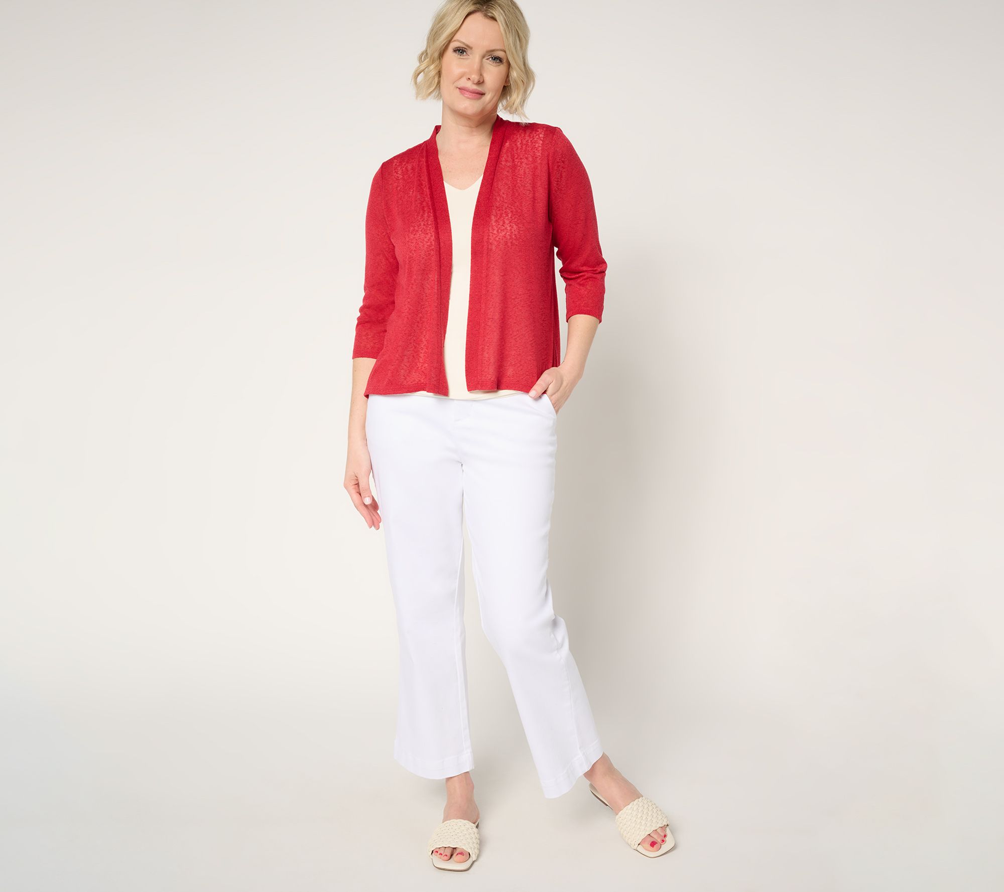 Take on seasonal layering with this versatile slub knit cardigan. The three-quarter sleeves and drape front design create a flattering silhouette that effortlessly elevates any outfit. From Denim & Co® Fashions.