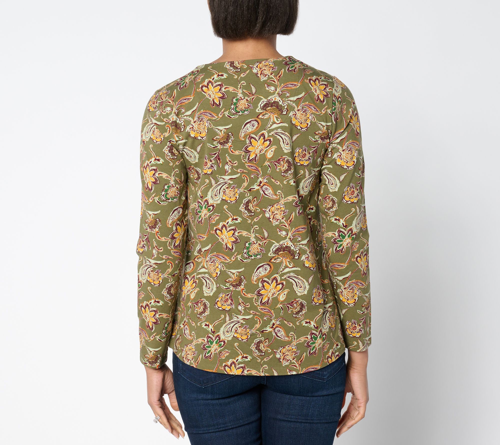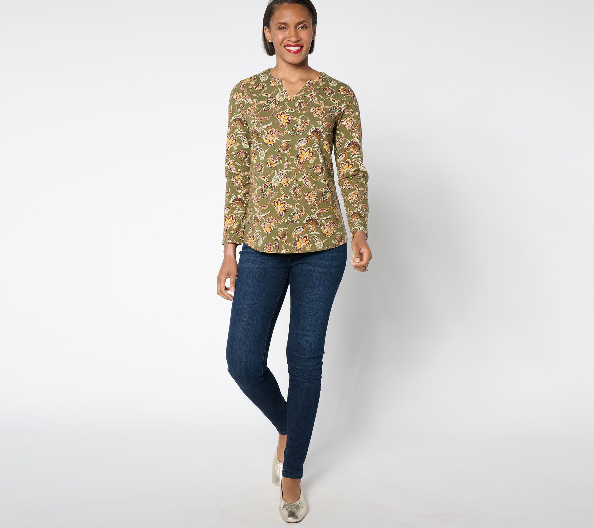 Through the changing seasons, your preference for prints remains strong. Pick up this split V-neckline long-sleeve top to freshen up your casual options when the weather turns chilly. From Denim & Co.® Fashions.