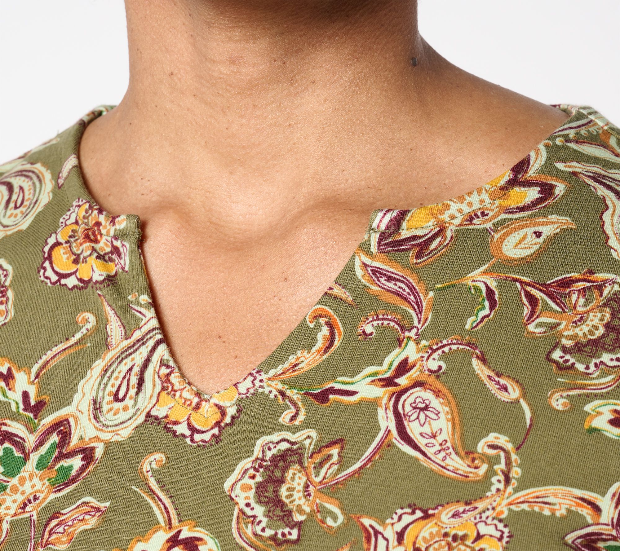 Denim & Co. Favorite Jersey Printed Split Neck Top