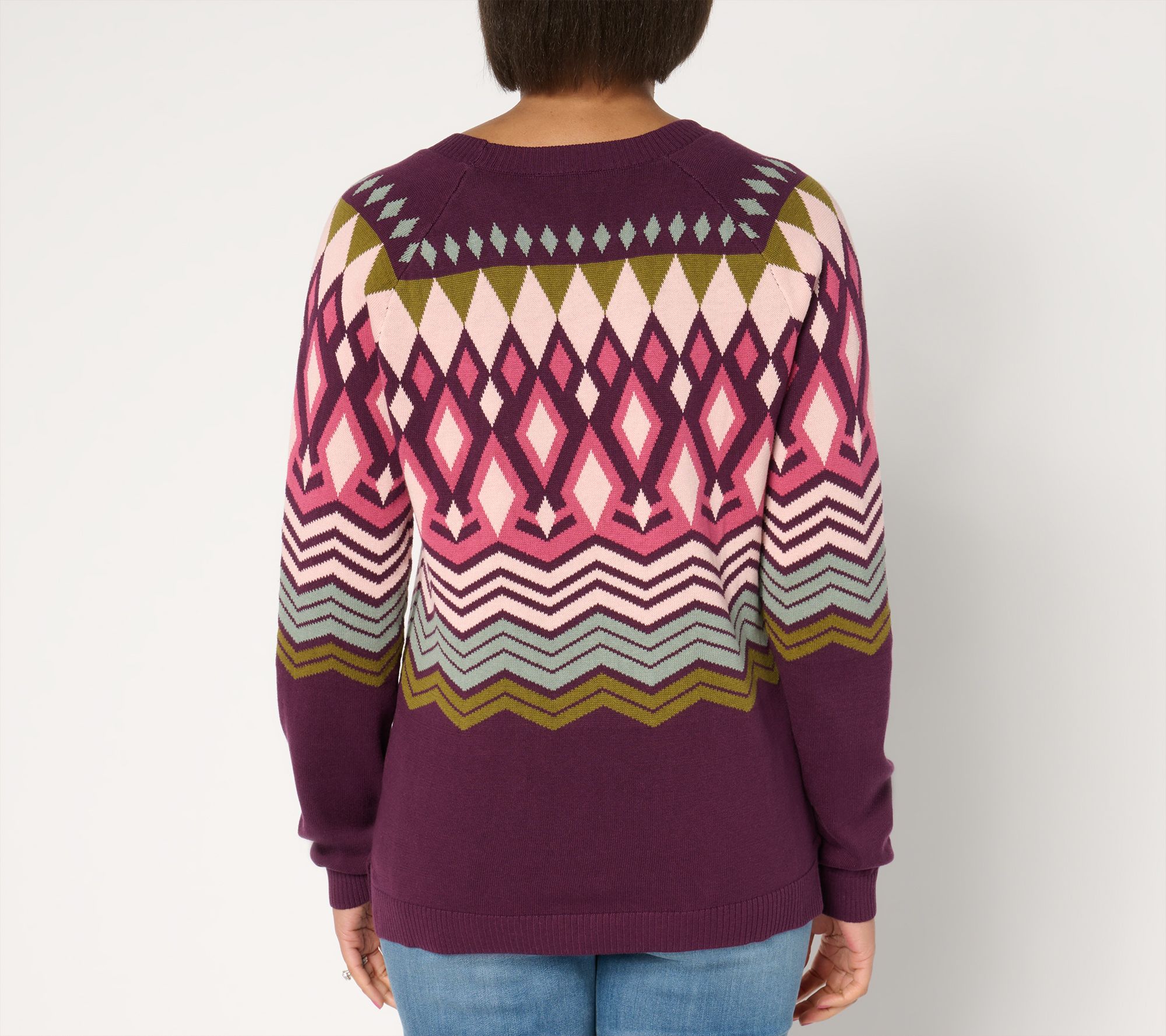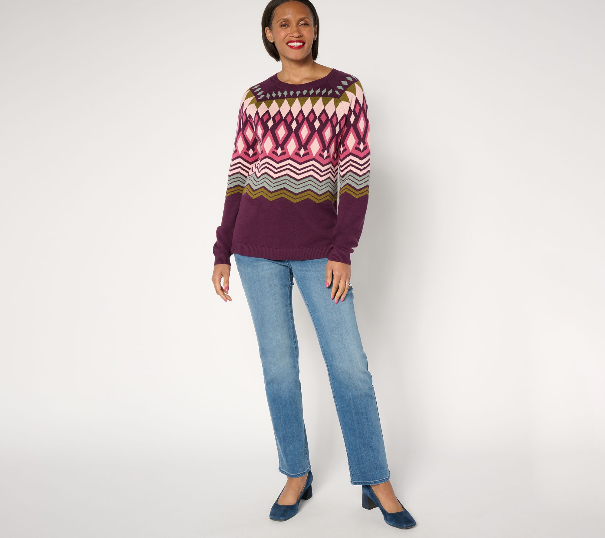 Denim & Co. Nordic Jacquard Crew Neck Sweater