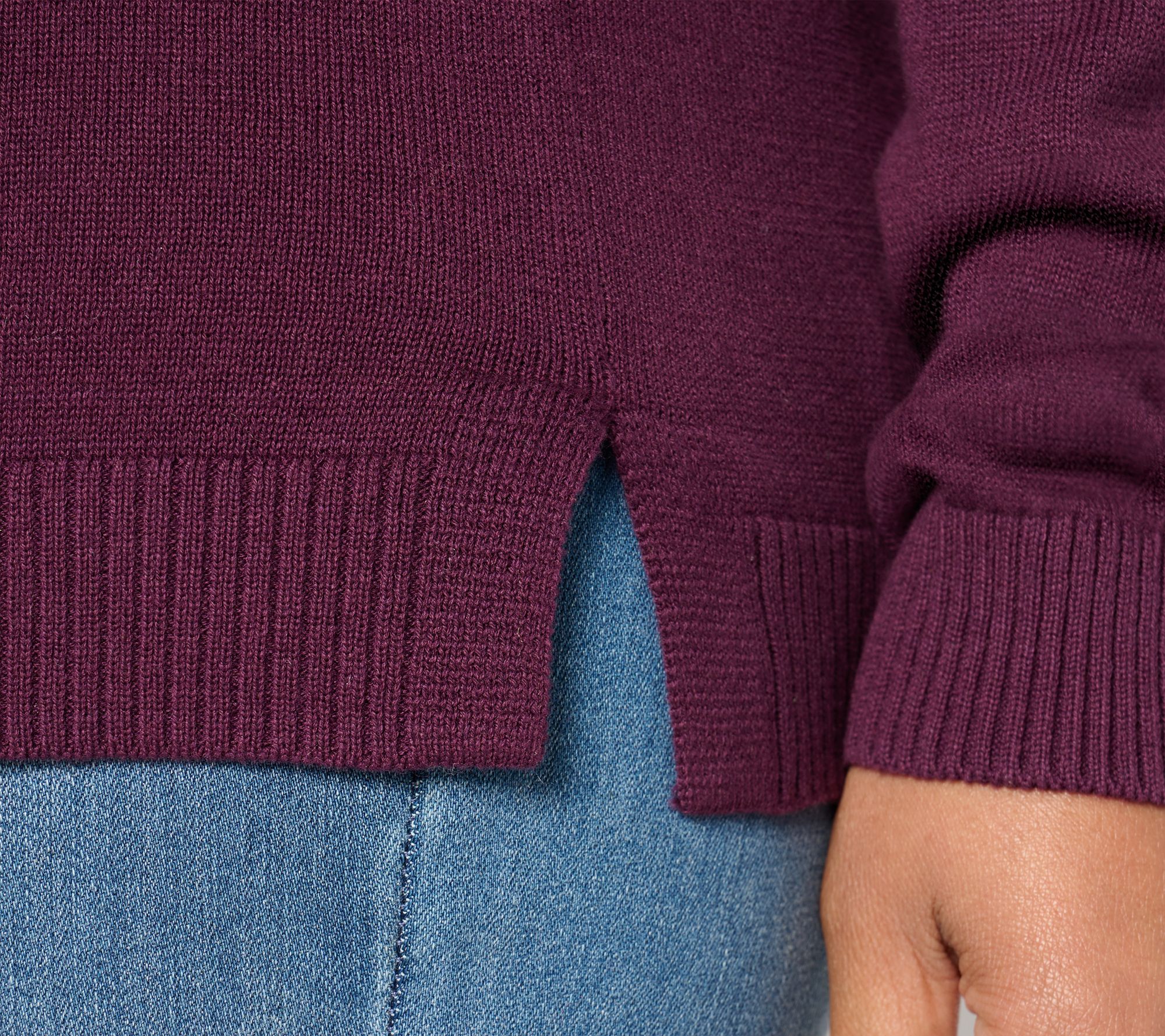 • Features: crew neck, long raglan sleeves, side slits, ribbed collar, hem, and cuffs, Nordic jacquard design