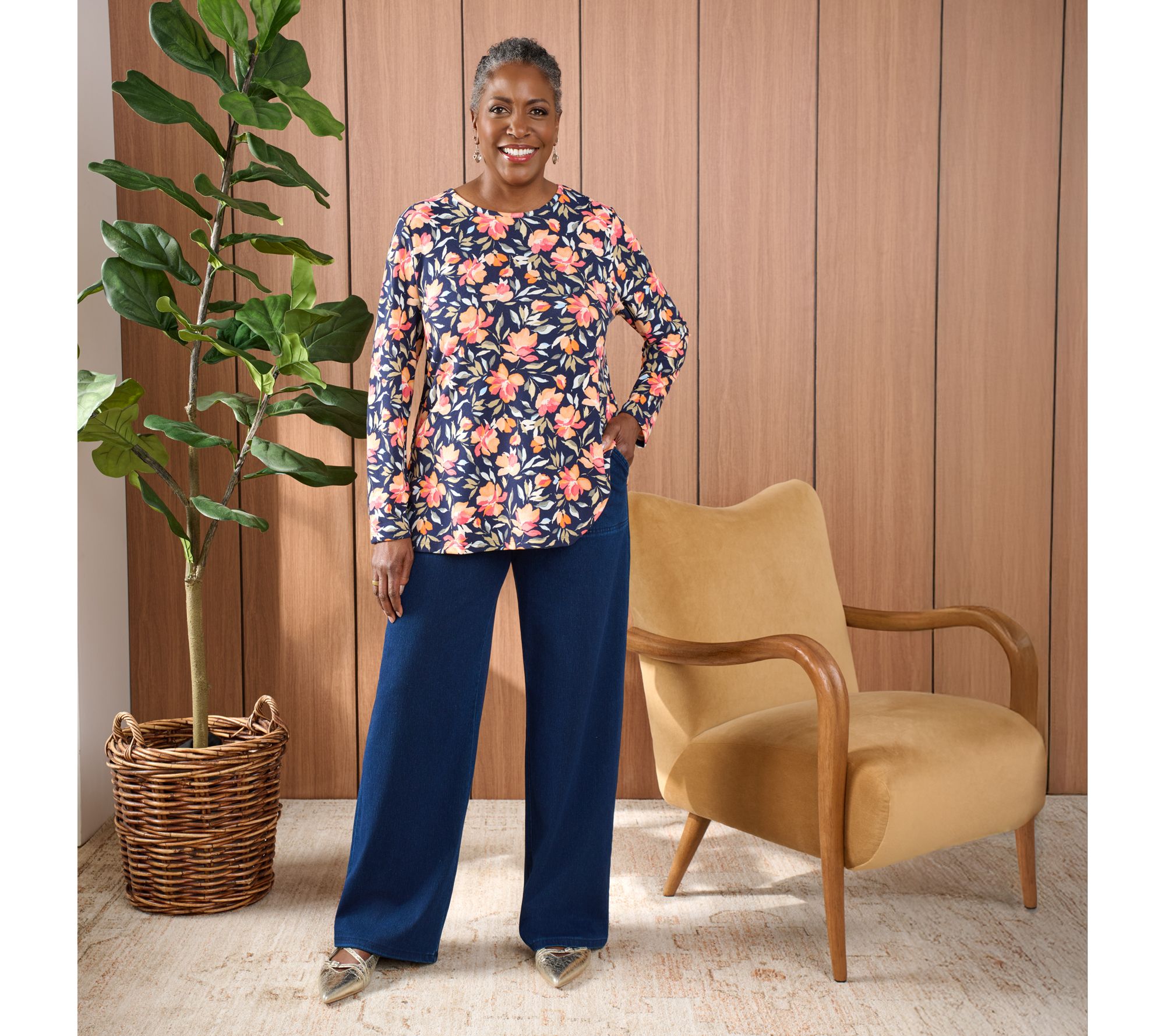 Move comfortably in the modern wide-leg (but not too wide!) silhouette that comes in an array of on-trend options (colors and prints). Whether you're on the fast track (to-do lists, meetups, appointments) or ready to slow down for some "me" time (think: good book and a comfy couch), these everyday essentials are just your speed. From Denim & Co.® Fashions.