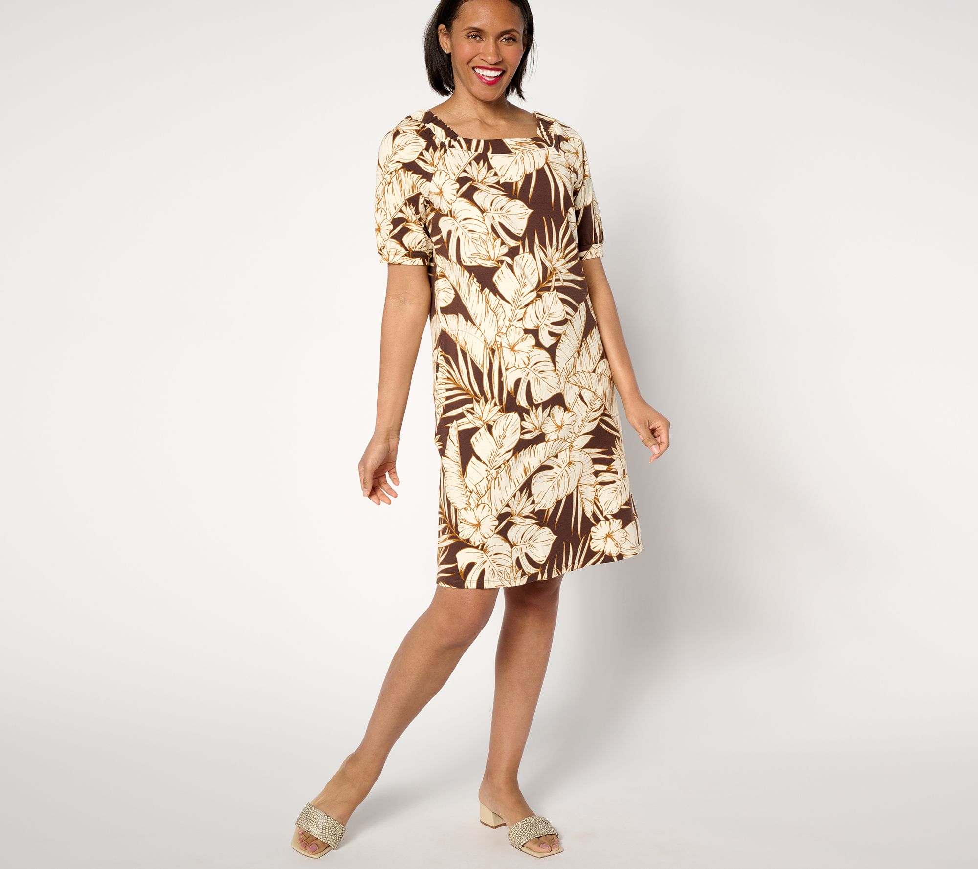 Just landed -- this Favorite Jersey knit dress with visions of sun-soaked destinations and tropcial getaways. Works for a sunny Wednesday workday, too. From Denim & Co.®. Fashions.