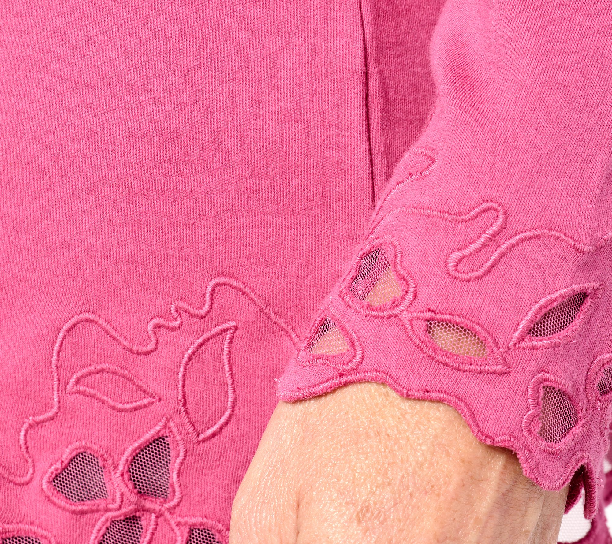 Style elevator, going up! This charming knit tunic takes your everyday cotton wardrobe to new heights with intricate embroidery. From Denim & Co.® Fashions.