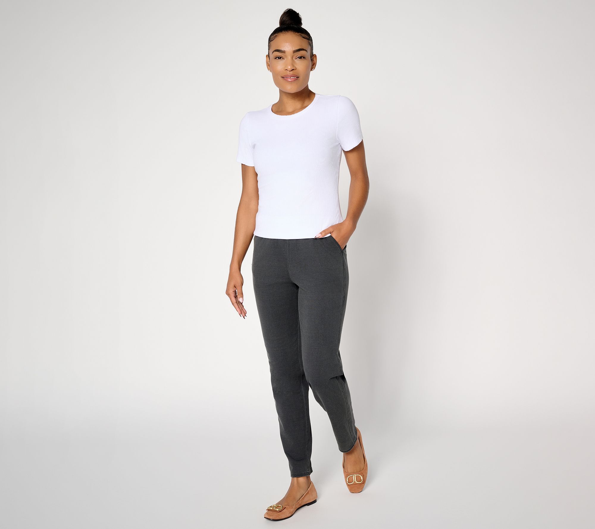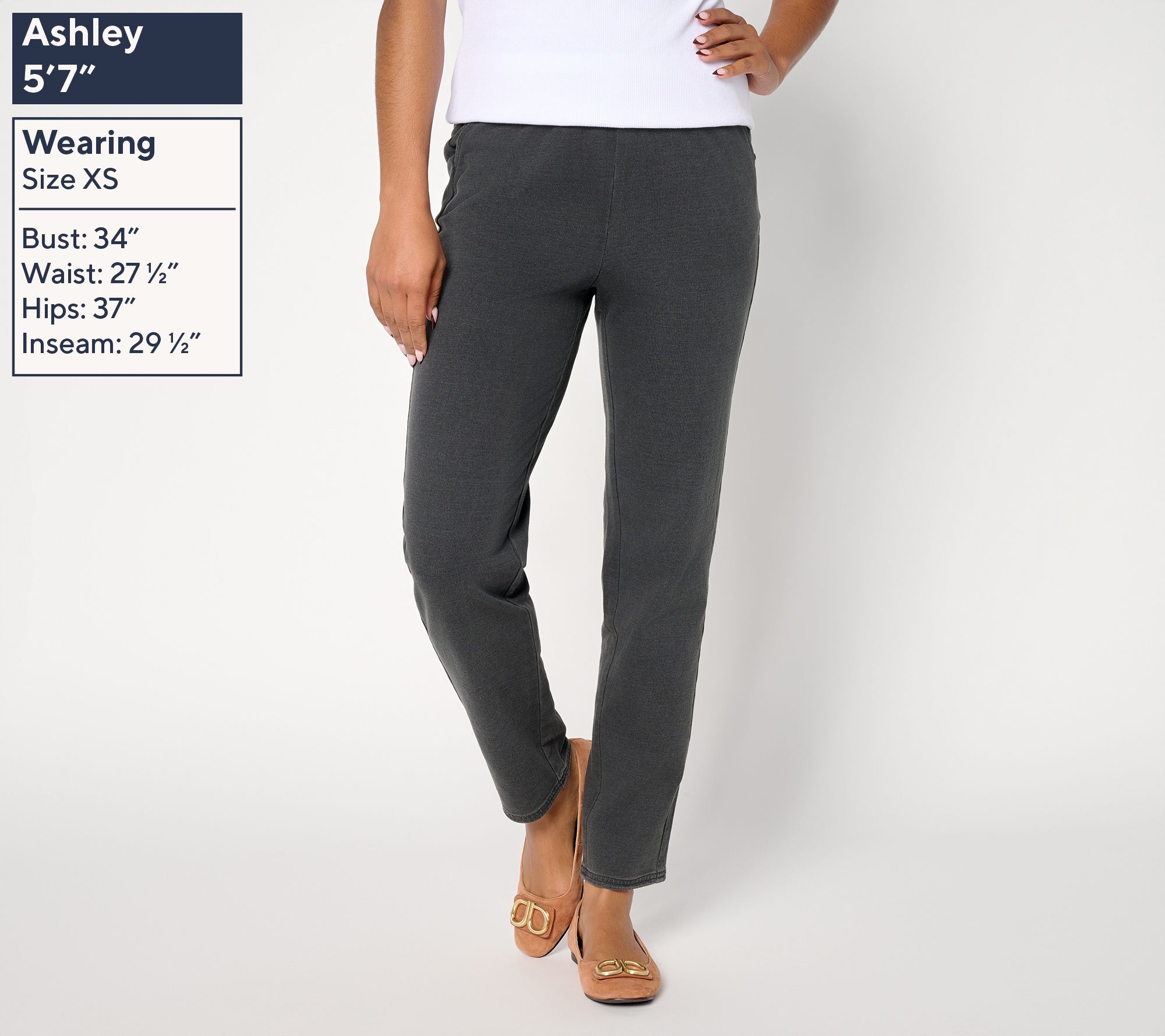 Jeans for now. From casual outings to late afternoon strolls, these knit denim ankle pants deliver all-day comfort with a trend-right slim-leg silhouette. The pull-on style with handy slash pockets makes getting dressed easy, whether paired with sneakers or sandals. From Denim & Co.® Fashions.