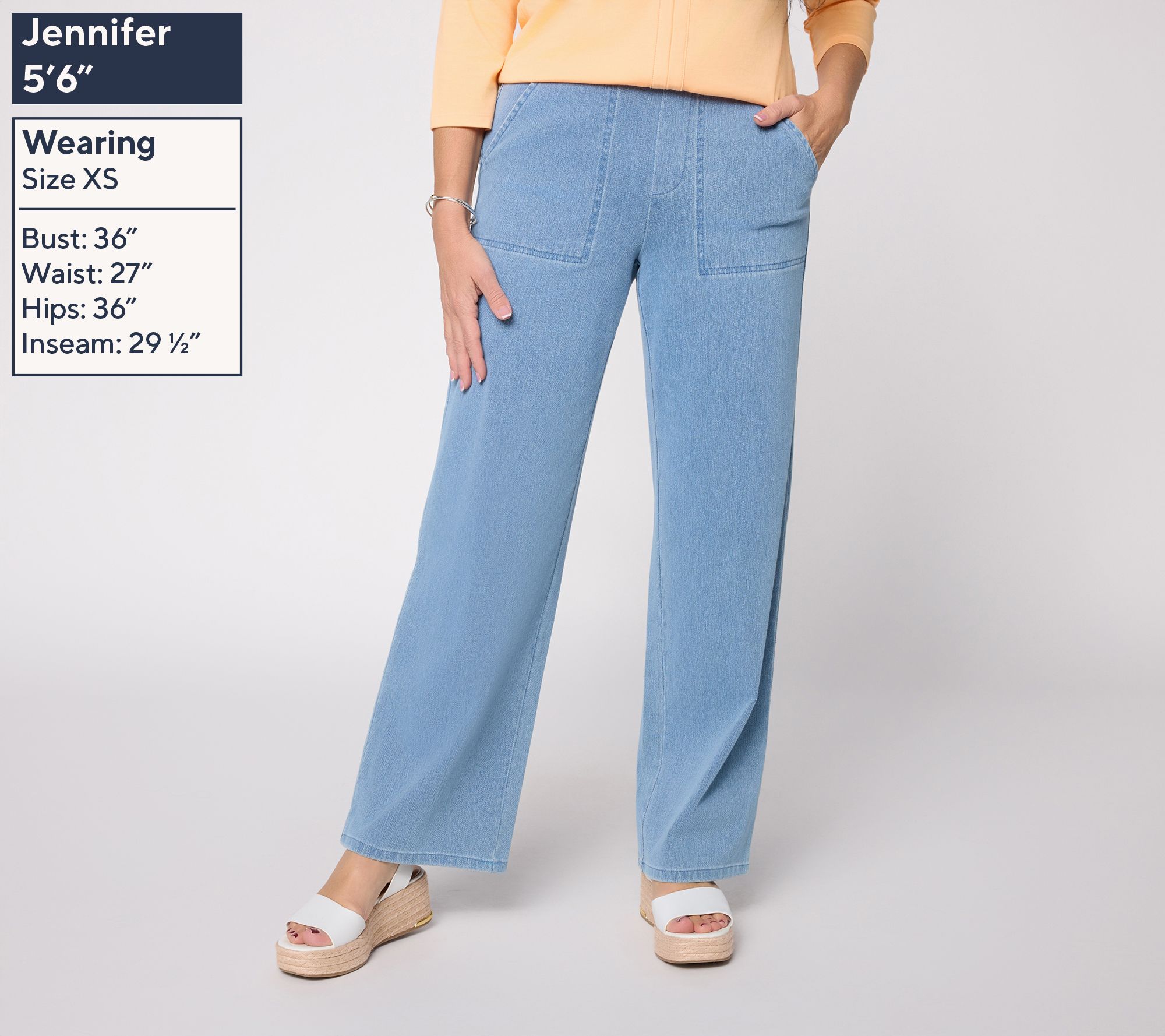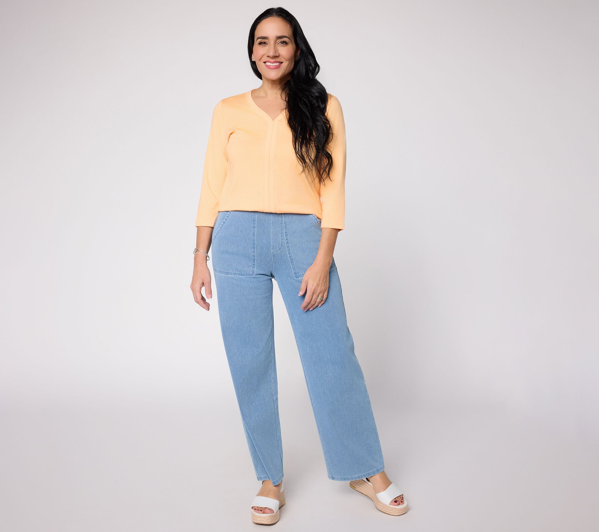 Worry less about what to wear when you have these pants in your rotation. Crafted in Comfy Knit Air fabric, they offer the classic look of denim with the flexible fit of your favorite yoga pants. The pull-on design with a faux fly makes them a no-fuss fashion staple. And of course, Denim & Co. didn't forget our favorite feature -- front and back pockets.
