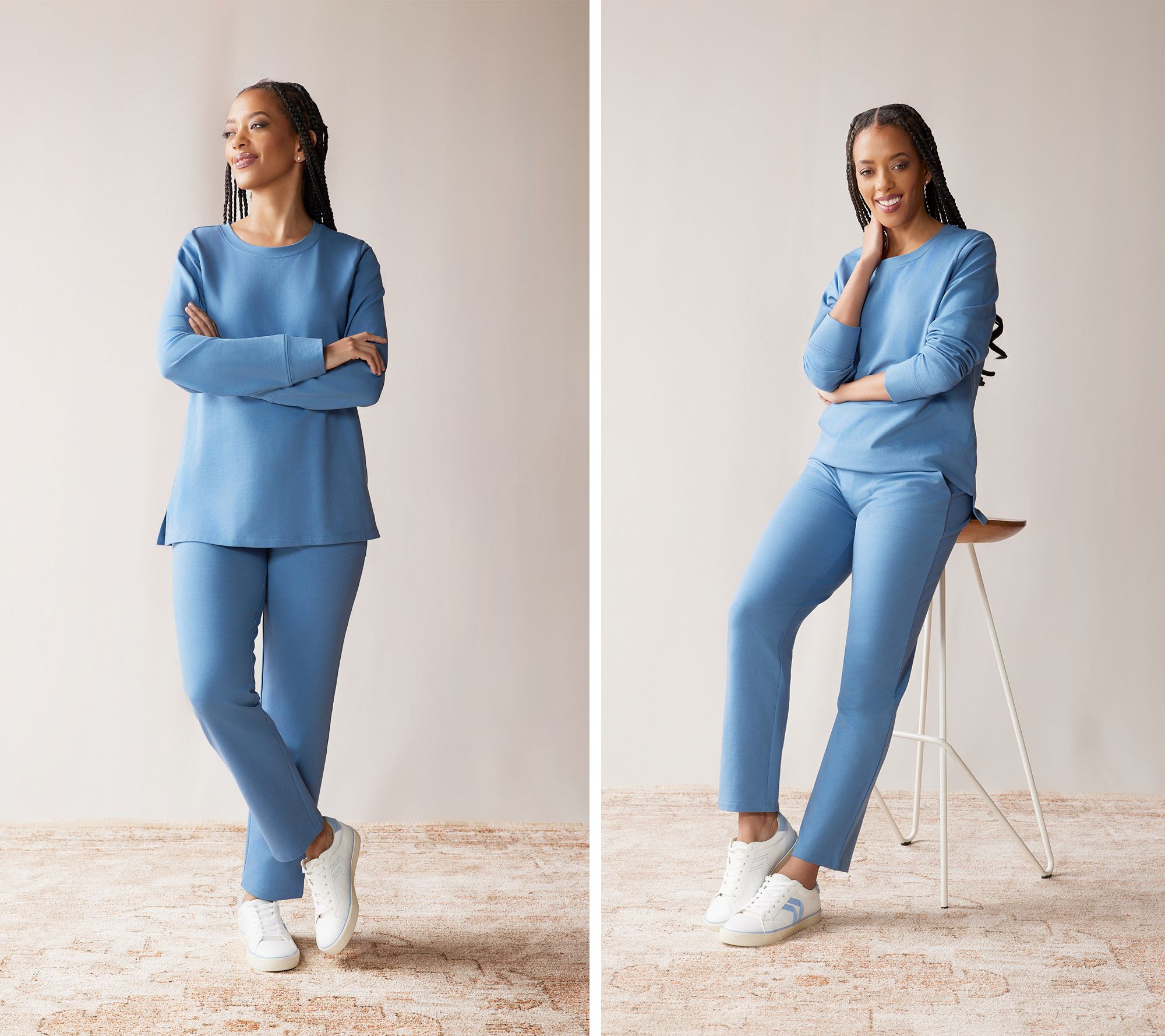No mixing. No matching. No morning wardrobe meltdown. You're ready to own the day in seconds with this totally compatible (and super-comfy!) top and pants twosome from Denim & Co. As you retire the sequins and festive fuss of the holiday season, this EasyWear French terry set is exactly the ahhhh moment that's been on your wish list.