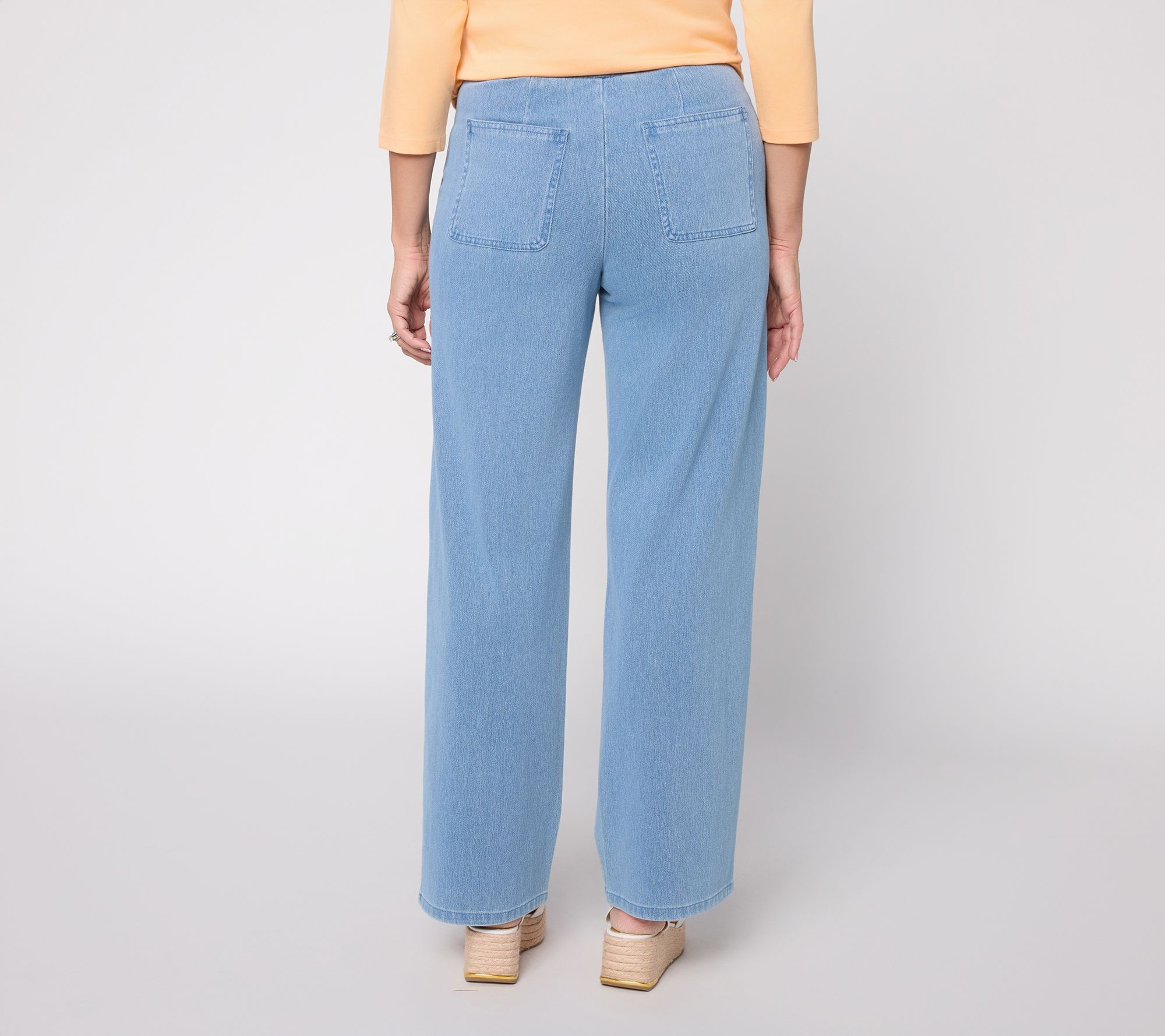Worry less about what to wear when you have these pants in your rotation. Crafted in Comfy Knit Air fabric, they offer the classic look of denim with the flexible fit of your favorite yoga pants. The pull-on design with a faux fly makes them a no-fuss fashion staple. And of course, Denim & Co. didn't forget our favorite feature – front and back pockets.