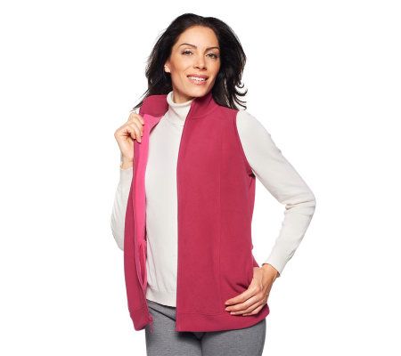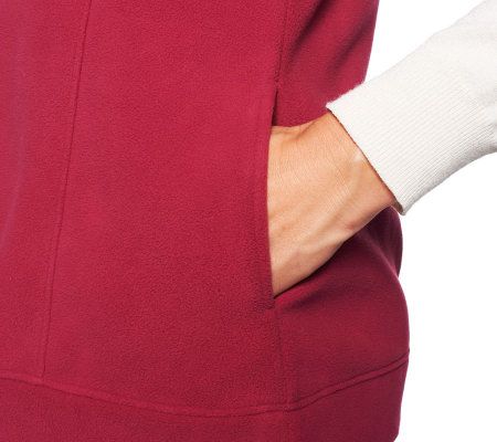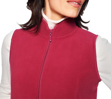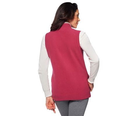 Versatile style. Whether layered with a blazer or worn on its own, this fleece vest is a style staple thanks to a zip front, side pockets, and front seaming detail. From Denim & Co.(R) Fashions.