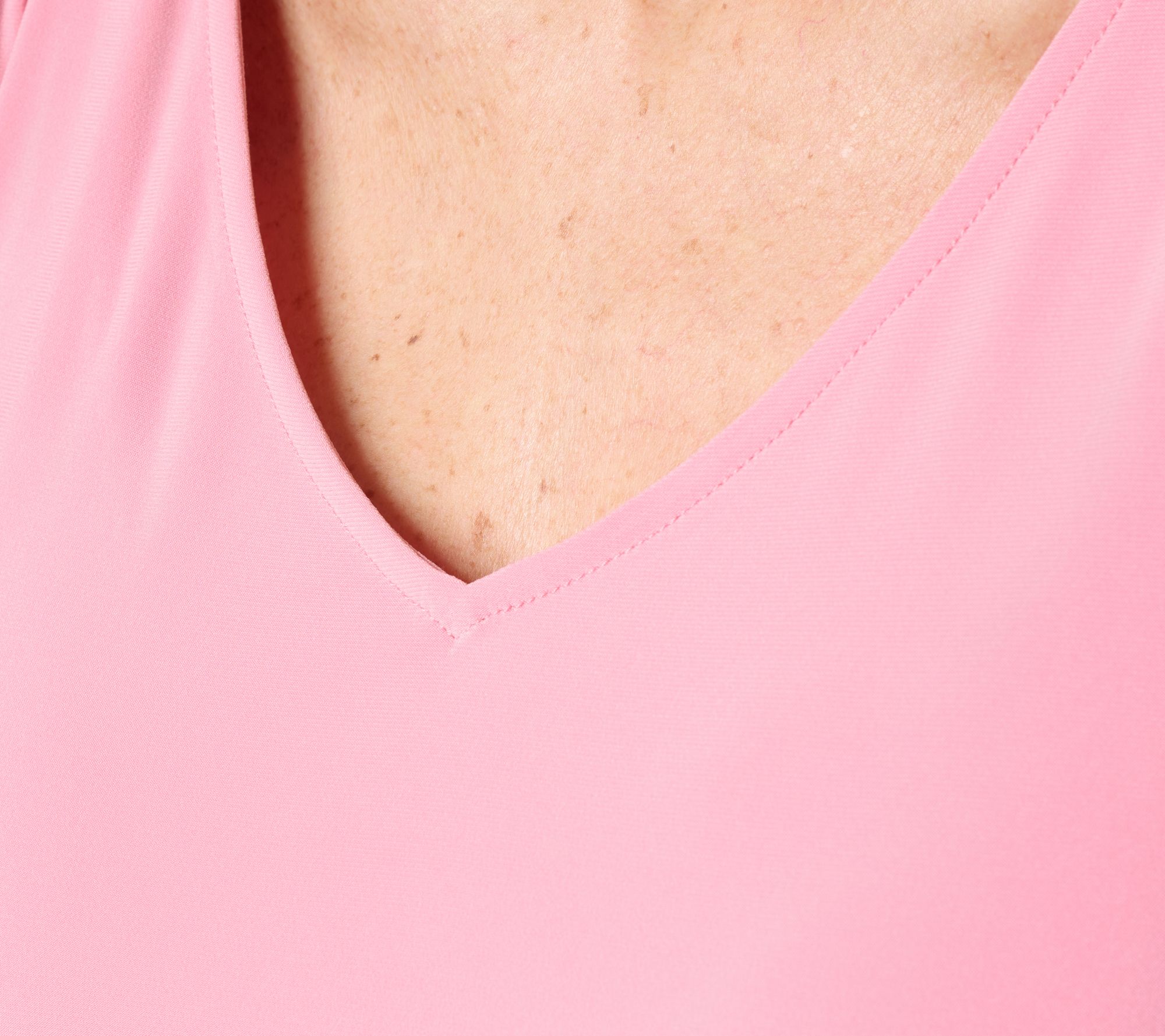 • Features: solid tank design, V-neckline, narrow shoulder straps, straight bottom, pullover style
