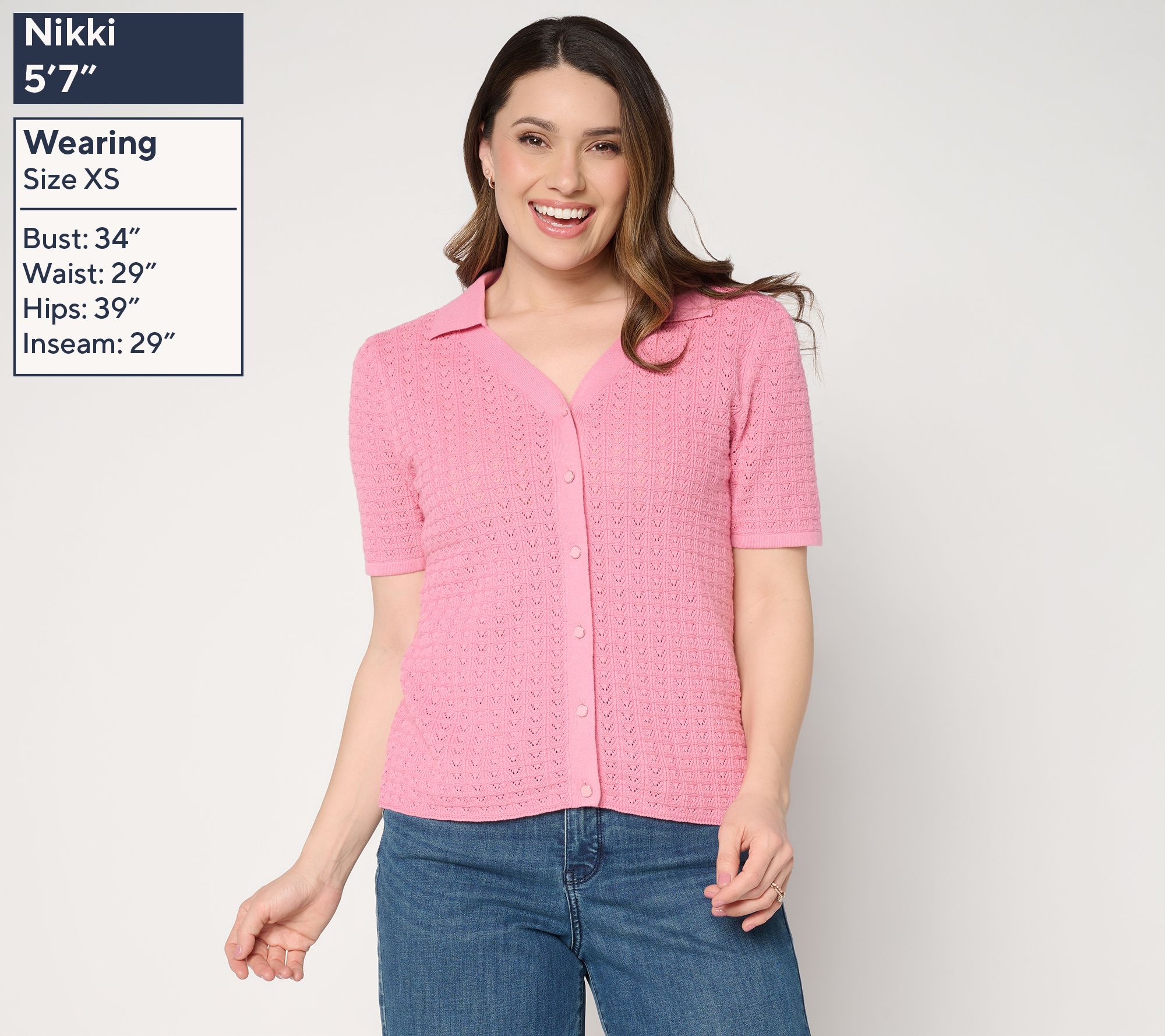 Cotton crochet cardi -- a great example of alliteration, and an even greater example of what your spring closet craves. The trending crochet design keeps things easy-breezy, while delicate shell buttons and shirred short sleeves add tailored details that transition effortlessly from day to night. From Dennis Basso.