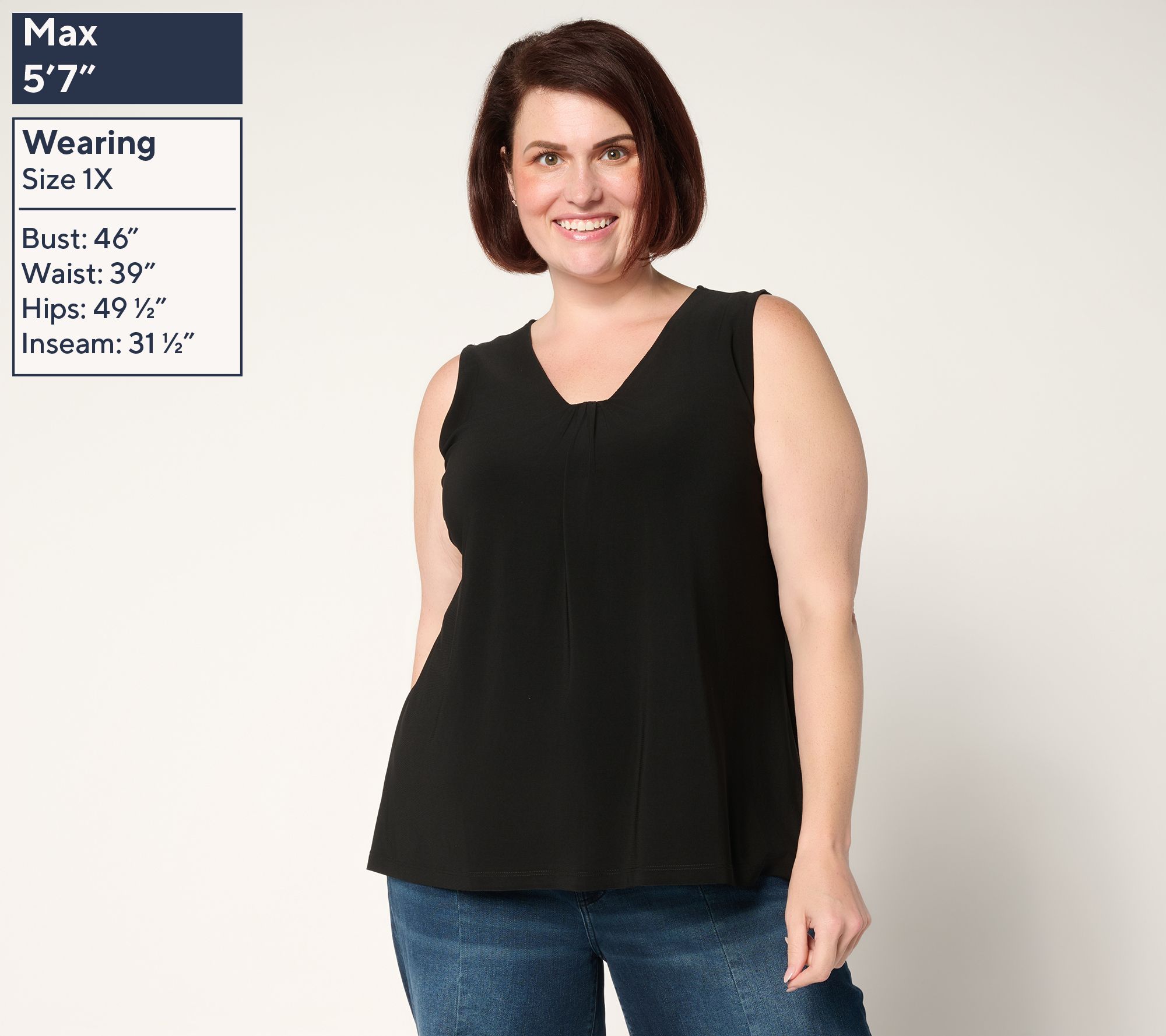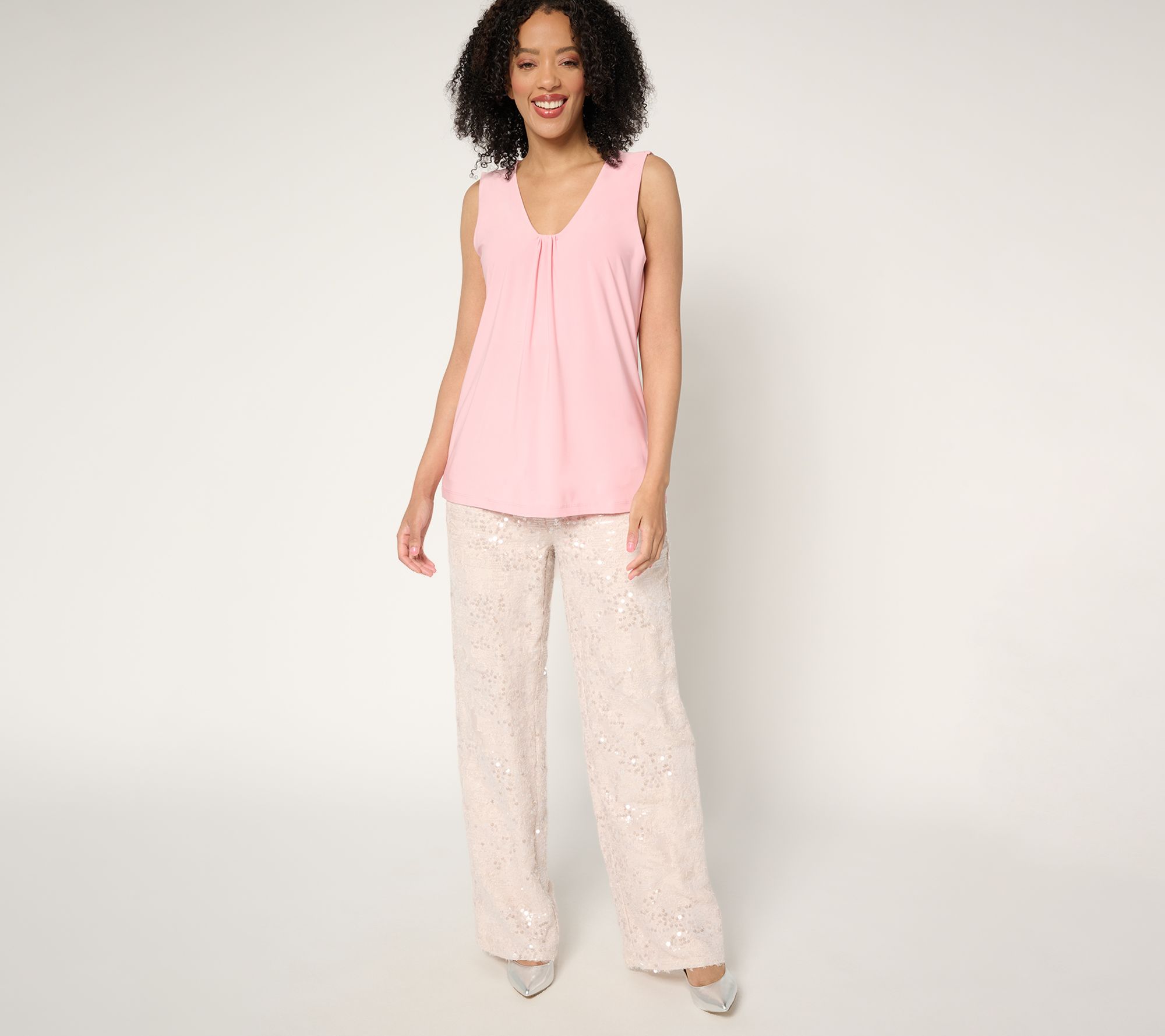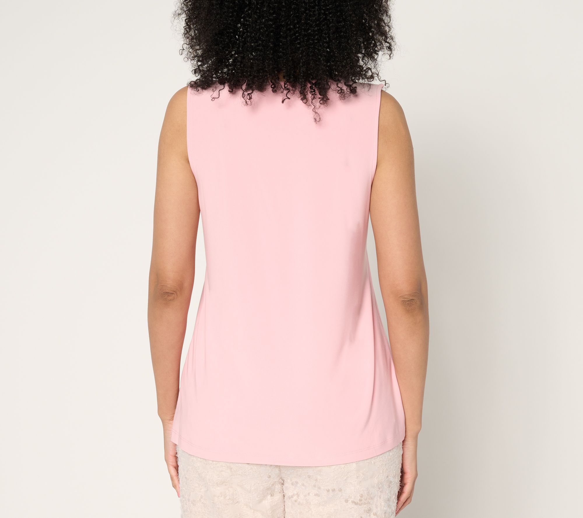 You'll never run out of ways to wear this sleeveless knit top. A flattering drape at the front gives it that luxe look that plays well with everything from your fanciest pieces (think: sequined pants and heeled sandals) to more casual combos (think: cropped pants and boat shoes). From Dennis Basso.