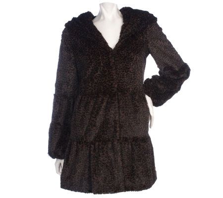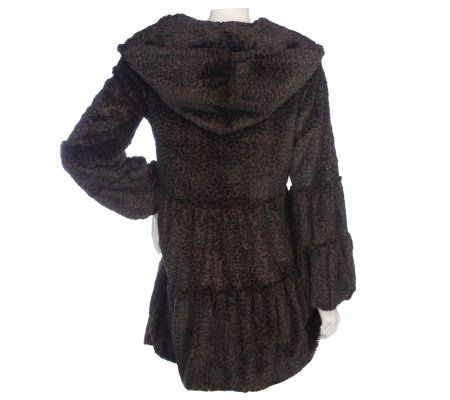 Fashionable. Flattering. Flirty. Make this faux fur leopard tiered coat part of your go-to cold-weather wardrobe. Fluid lines move with the body for chic comfort, while the hood provides additional warmth on those extra-chilly days. From Dennis Basso.