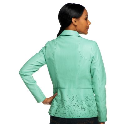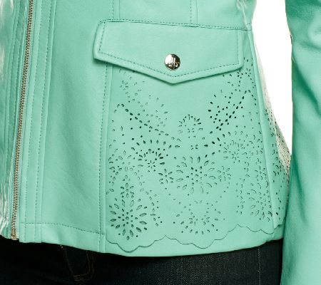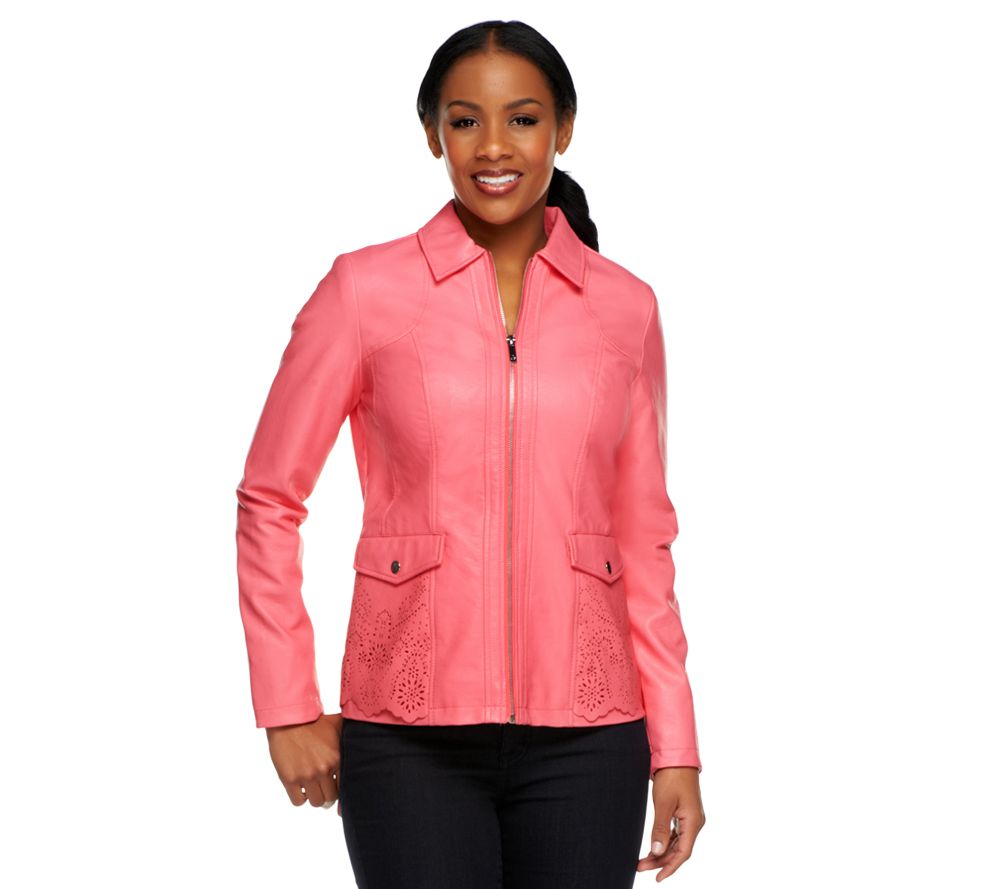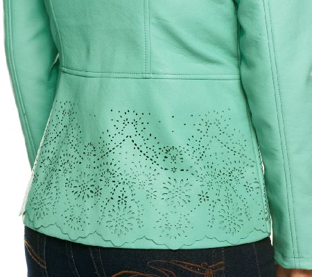 Punch up your look with the pretty, perforated detail of this faux leather jacket from Dennis Basso! Equally suited for the office as it is for weekends and shopping trips, this beautifully detailed jacket offers cool-weather chic in your choice of colors, including fresh springtime hues.