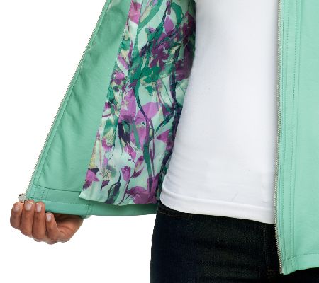 Luxury outerwear. From top to bottom, this fully lined jacket impresses with perforated details; two front-flap pockets; a classic shirt collar look; and signature Dennis Basso hardware. Add well-placed seaming and a front-zip closure, and you've got a jacket that is as fashionable as it is flattering.