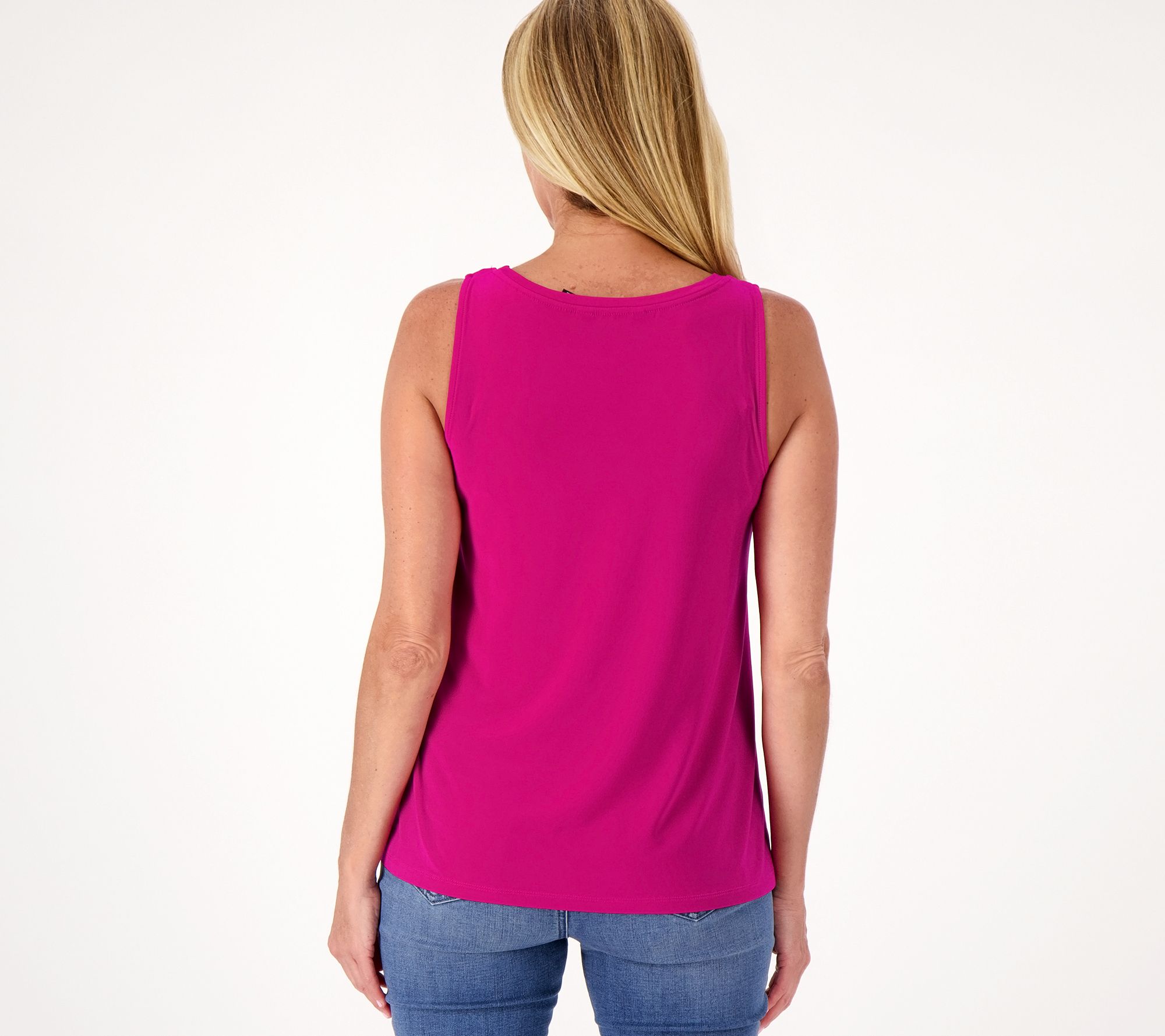 Comfortable and cute, this year-round tank can be worn under a cardigan when the weather cools or on vacation with capris and sandals. This super-soft pick is one you'll wear again and again. From Dennis Basso.
