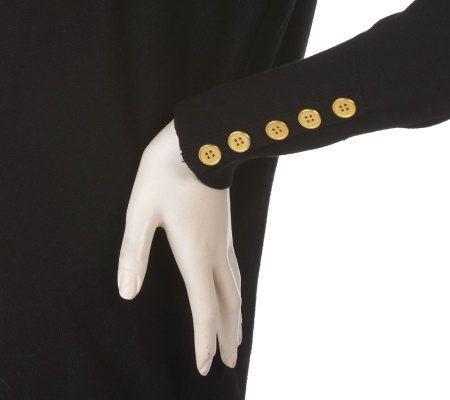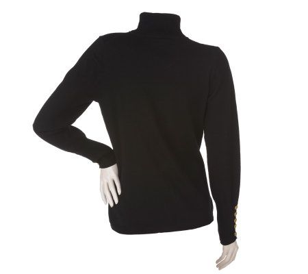 Slow and steady style. This turtleneck sweater isn't just a comfy way to beat the chill. With its chic button detailing along the cuffs, its a surefire way to send you zipping to the front of the fashion race. From Dennis Basso.