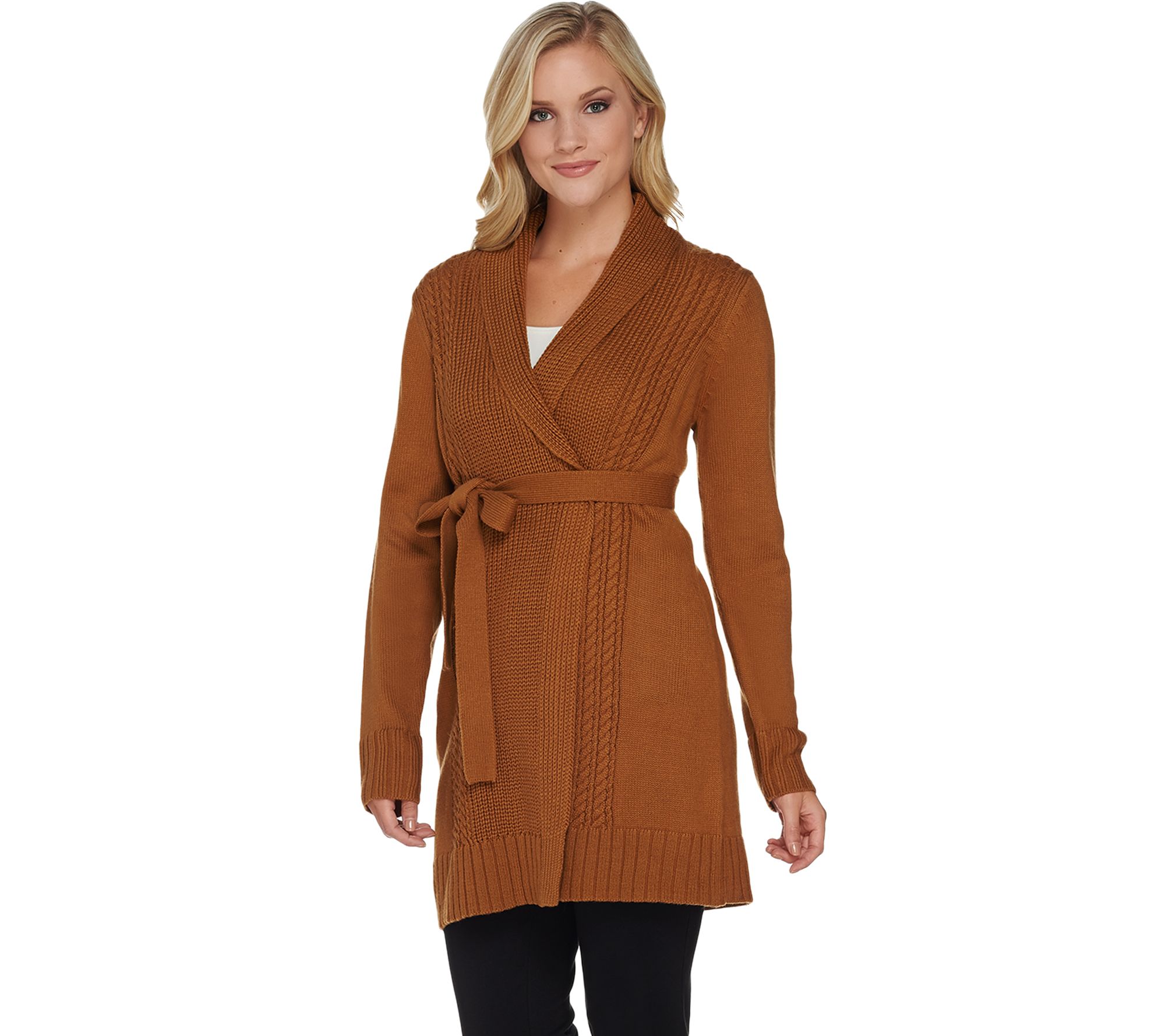 Embrace the beauty of options with this Dennis Basso mix stitch cardigan and its removable faux-fur collar. Tie the belt to accentuate your waist, or wear it open to reveal your layers underneath. From Dennis Basso.