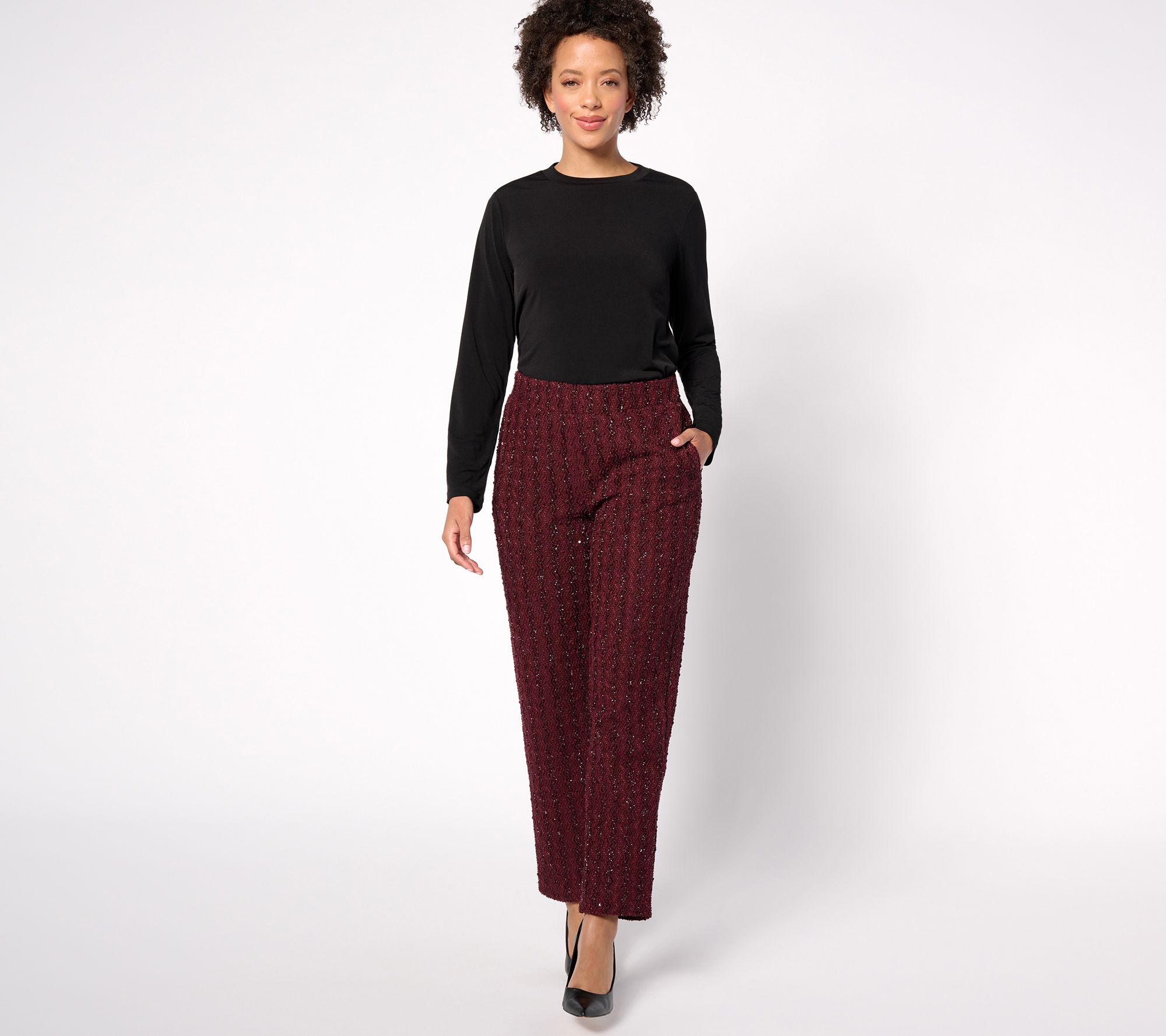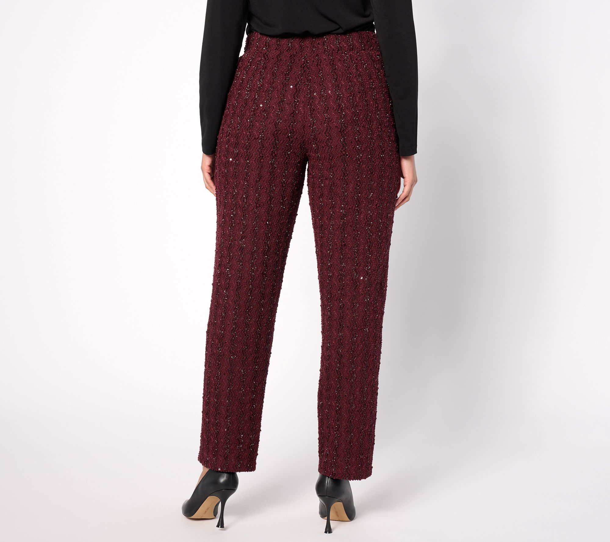 These sparkly sequin pants will be your new go-to for any special occasion when you want to stand out from the crowd. Ditch the fussy frocks and pair these trousers with a button-front blouse or a fitted sweater and your finest pair of heels. You'll have an instant hit on your hands. From Dennis Basso.