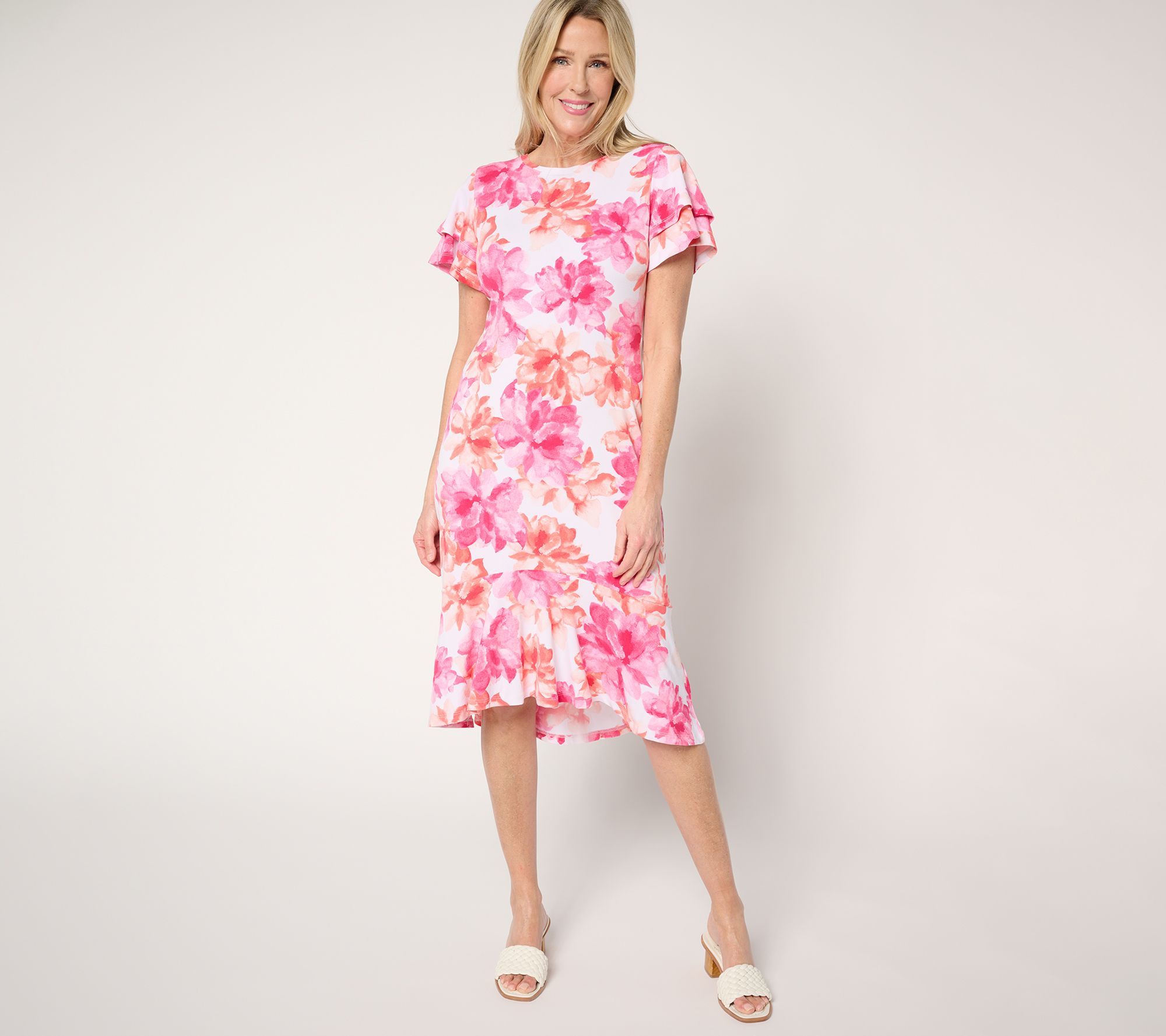 Something to celebrate? A ruffly dress in Dennis Basso's Caviar Crepe makes for one effortlessly flattering, sophisticated look -- and lots of pretty social pics! From Dennis Basso.