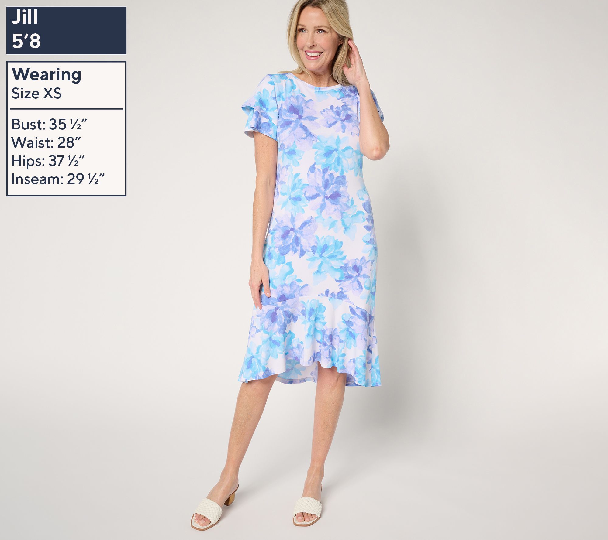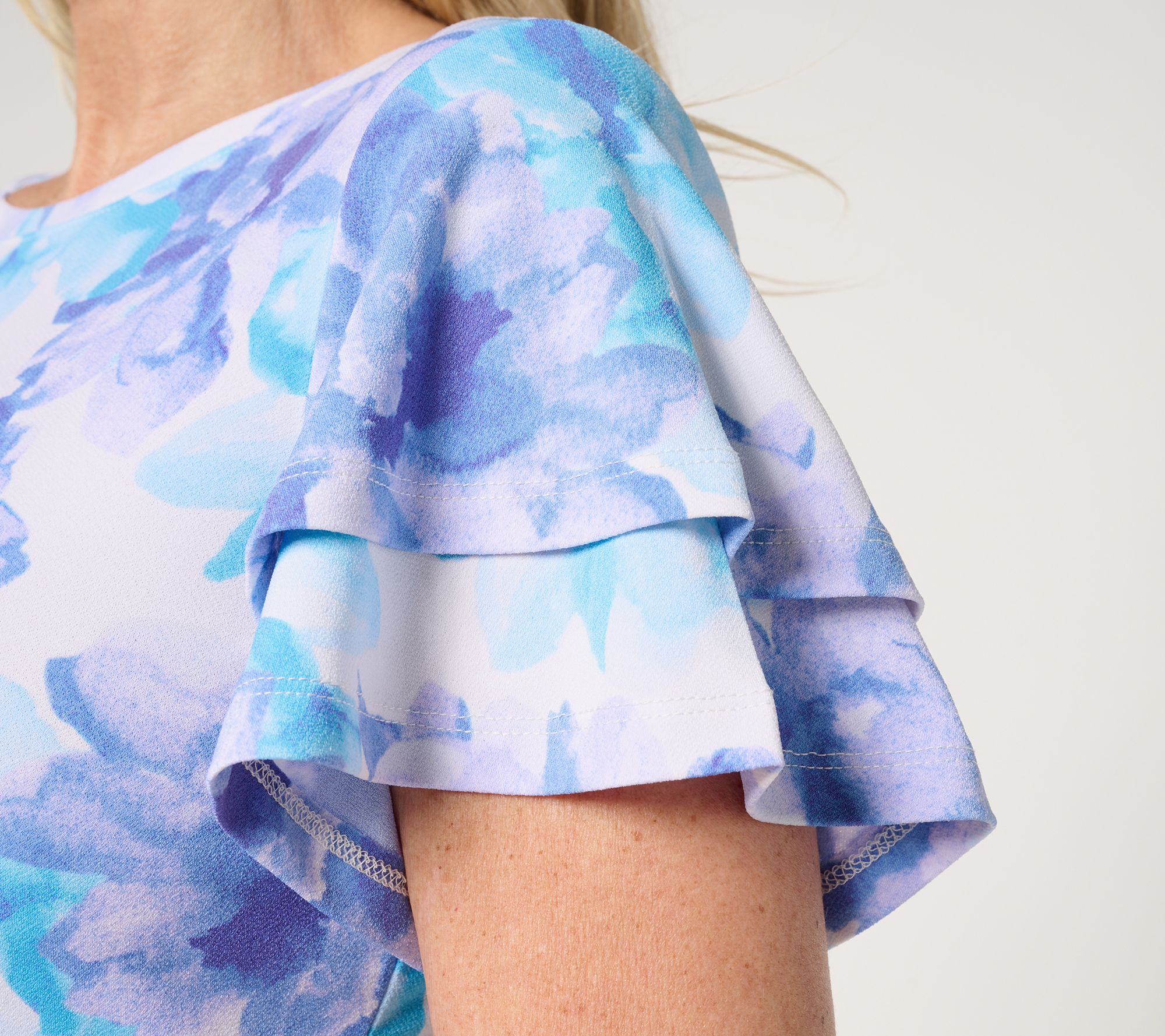 Features: two-layer ruffle sleeves, hi-low hem, ruffle hem, unlined design