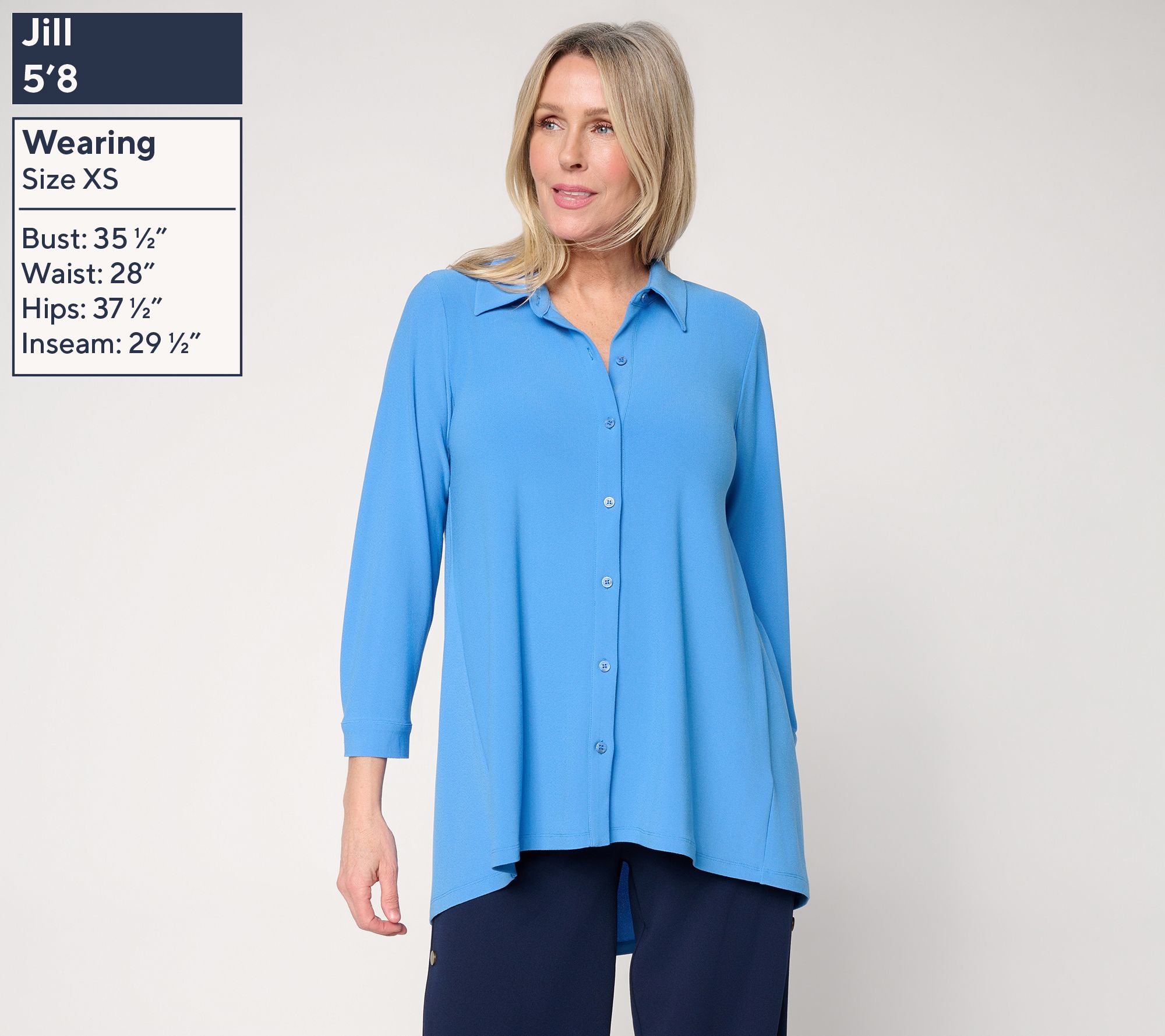 Fit: semi-fitted; follows the lines of the body with added wearing ease