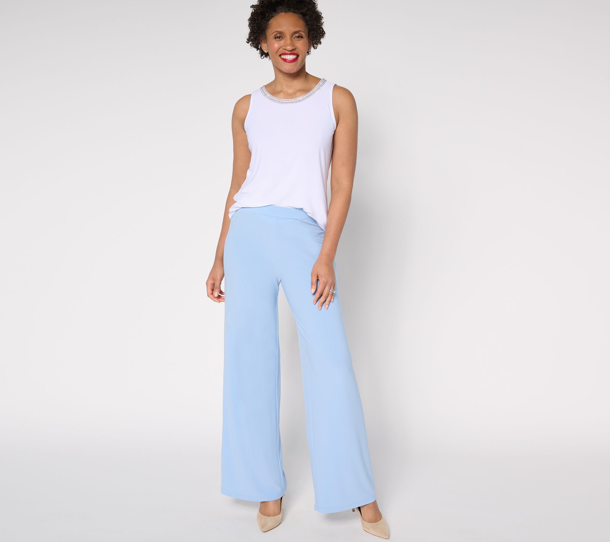 From the boardroom to the ballroom, these pull-on pants in Luxe Crepe are a must-have mix of enduring polish and sneaky comfort. The well-balanced wide legs let the style flow beautifully over most any footwear, booties to heeled sandals. From Dennis Basso.