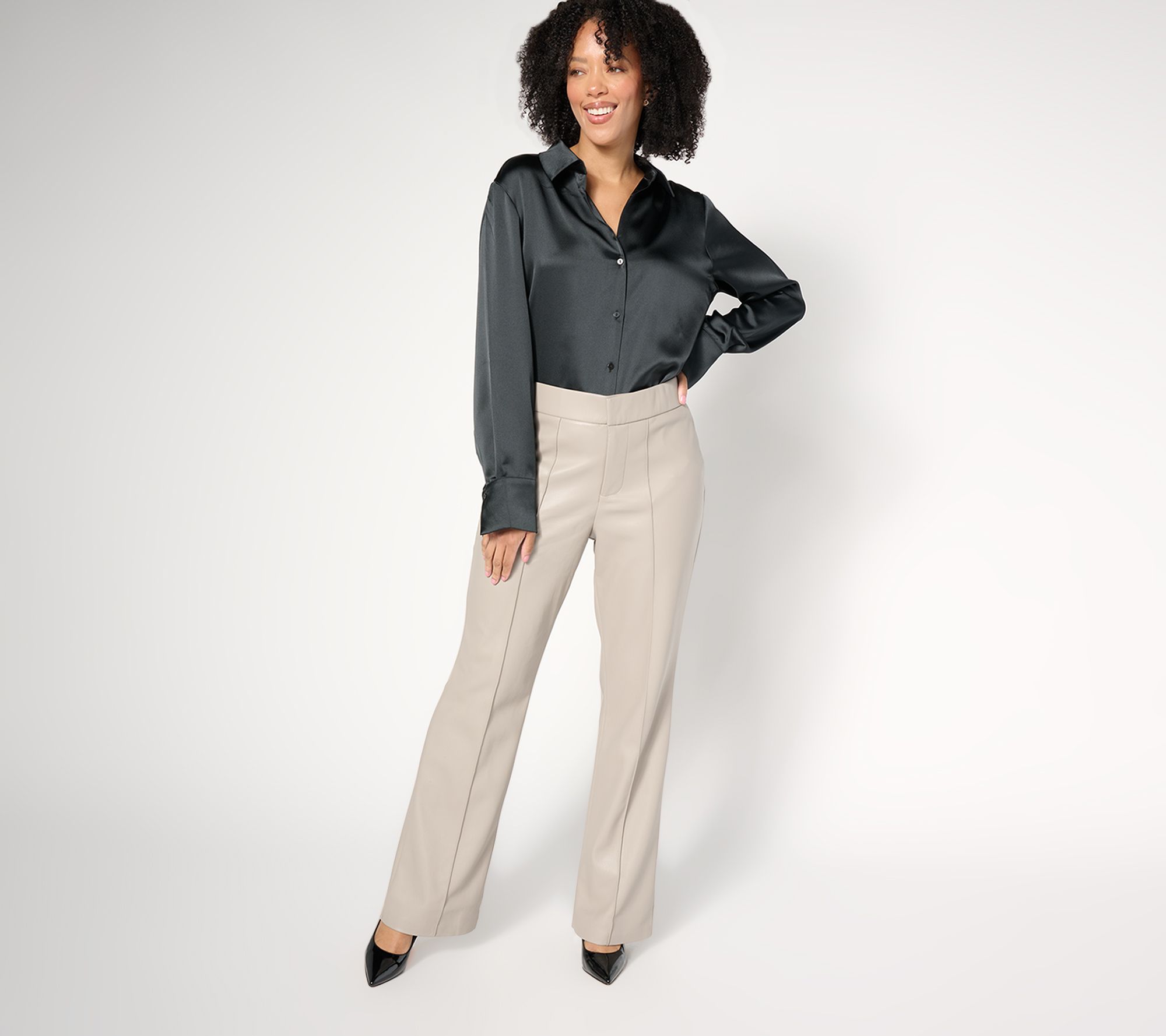 Yes, they're faux leather. But the only person who'll know... is you. Though, the fact that you feel so incredibly comfortable in these Dennis Basso pants with pintuck seams might just give it all away. Time for your poker face. From Dennis Basso.
