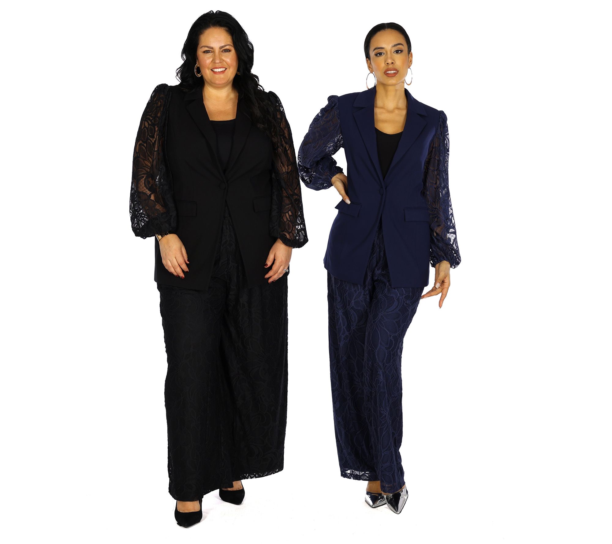 We love a statement sleeve -- and a statement blazer! Slip this ponte-meets-lace style on with wide-leg trousers or a simple sheath, and you've got a ultra-posh, polished look for your niece's wedding, best friend's birthday luncheon, or any splashy soiree. From Dennis Basso.