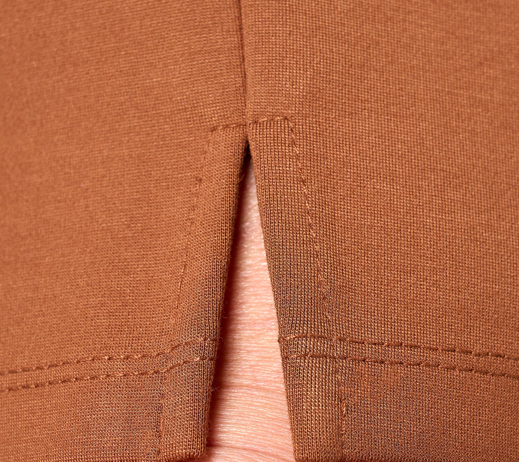 • Features: pull-on, angled front pockets, notch at side leg openings