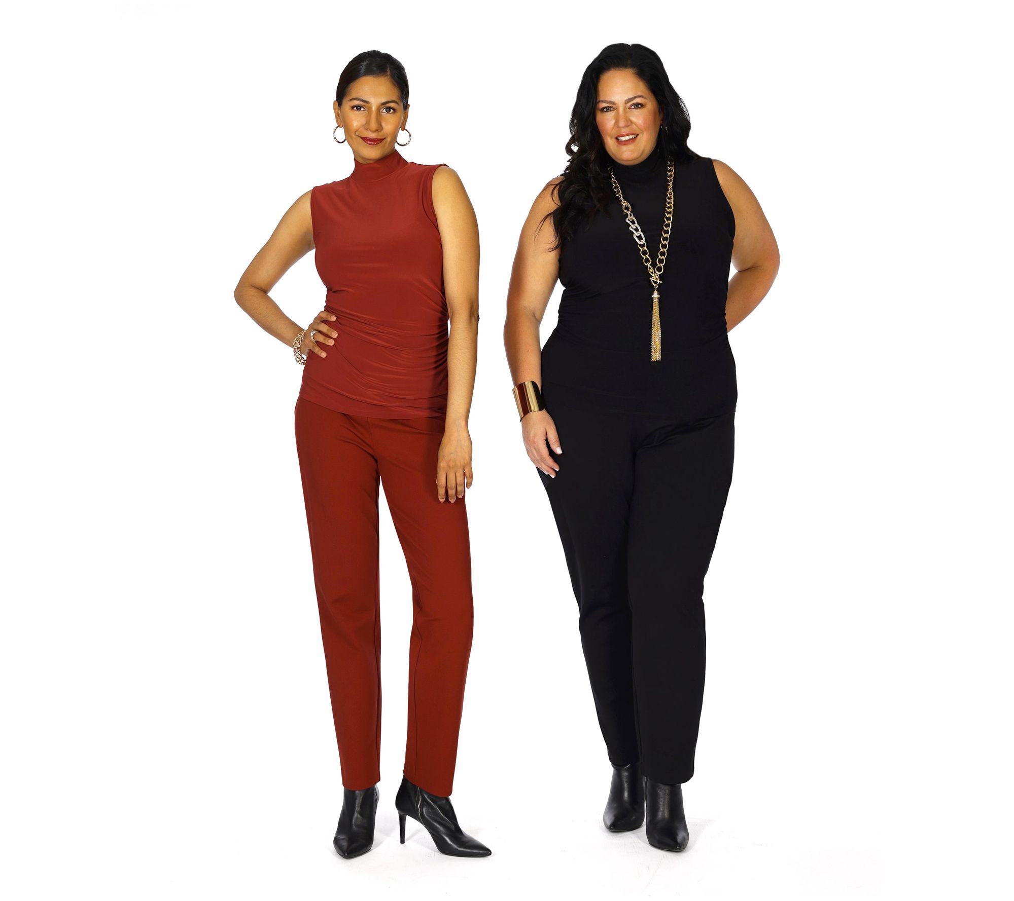 Flattering fit. Versatile wearing options. Sometimes a simple polished ponte knit pant is the answer to standing in front of your closet wondering what you'll wear today. No brainer. From Dennis Basso.