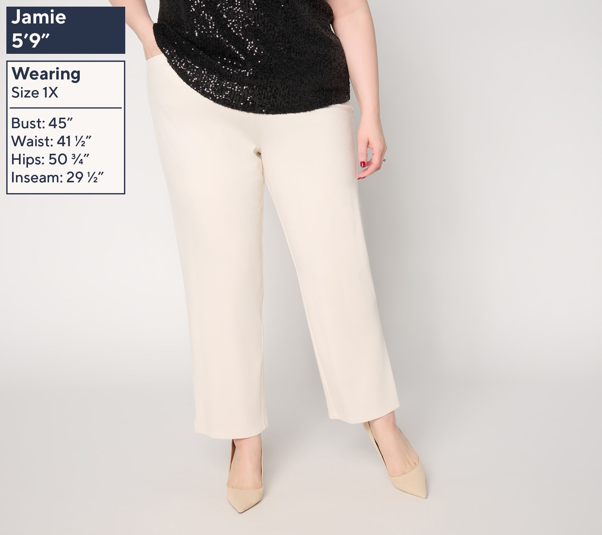 Your busy days call for easy style -- these slim-leg Summer Ponte pants deliver a polished look and lightweight feel that move from work meetings to dinner out without missing a beat. With front cat-eye pocket details and a subtle side notch at each ankle, these pull-on pants blend comfort and a refined fashion moment into one versatile pair. From Dennis Basso.