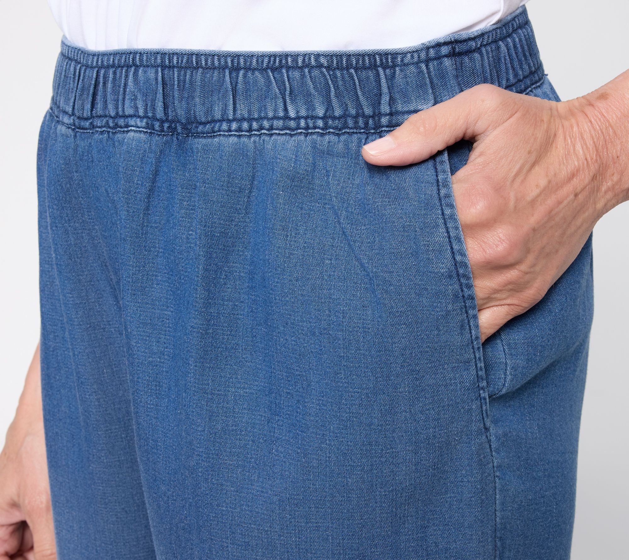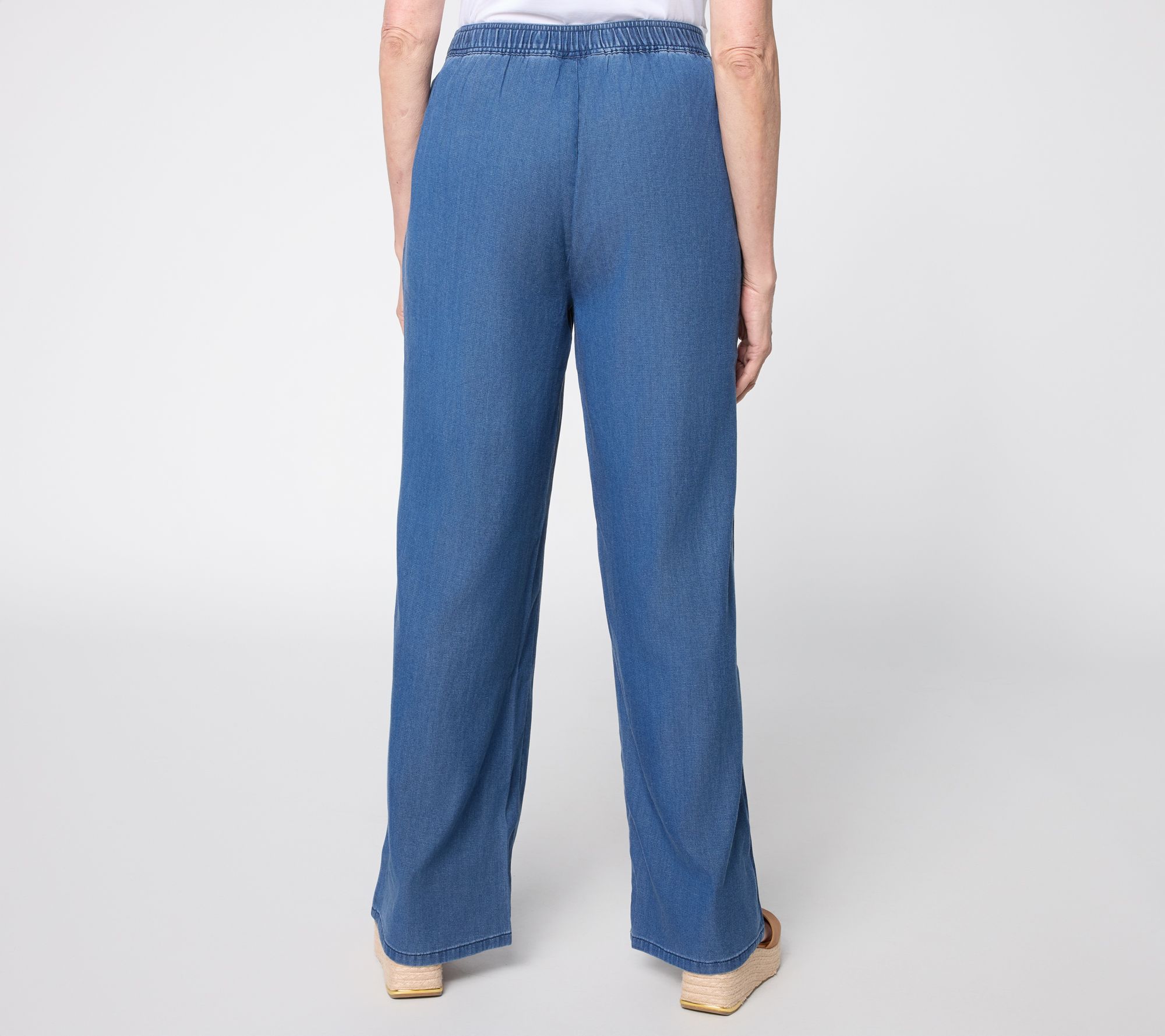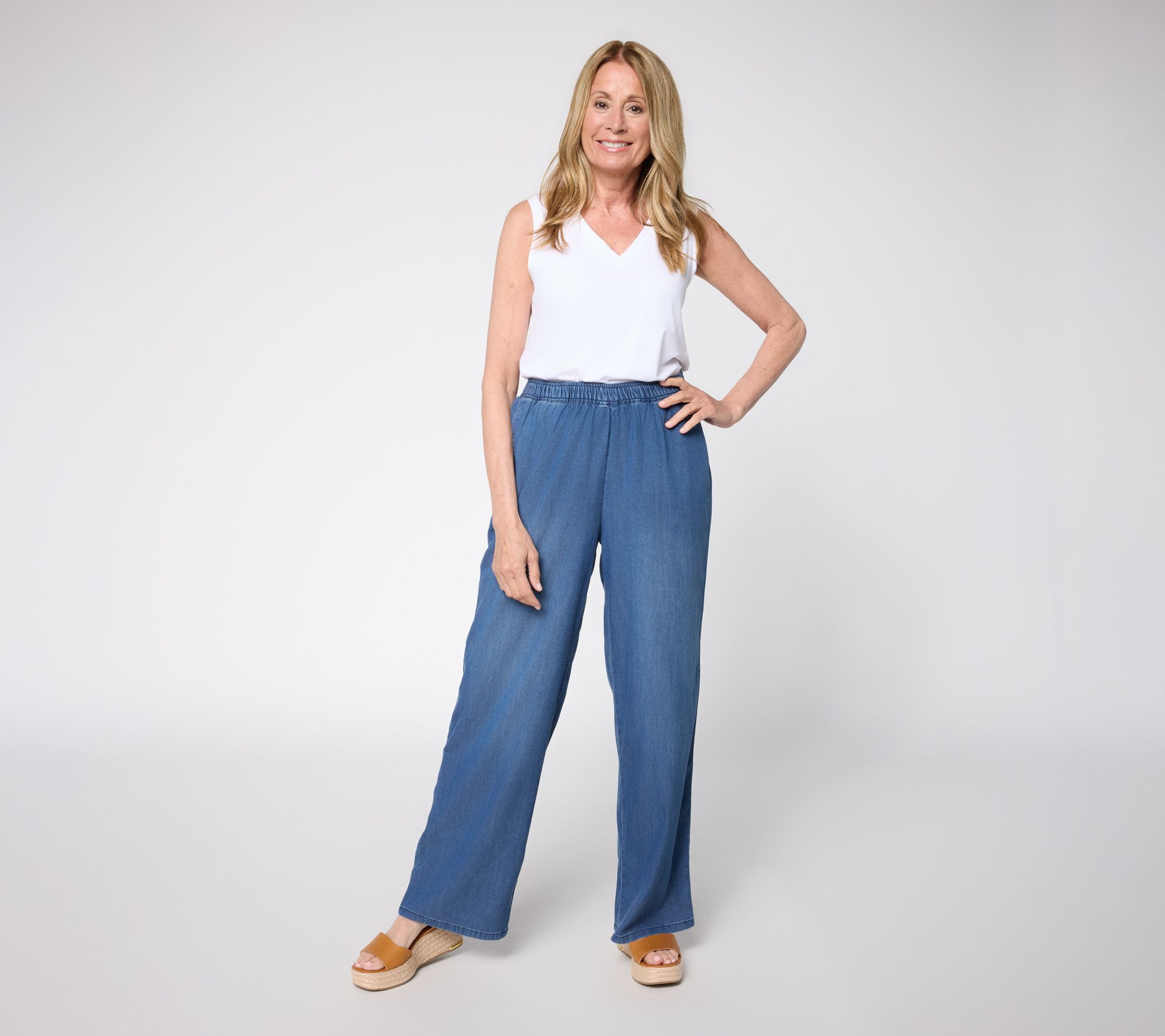 From downtime to running around time, this woven pant puts your comfort first thanks to a relaxed fit, pull-on styling and wide-leg silhouette. Create a variety of casual styles going from lounge-worthy looks (sneaks and tees) to laid-back social settings (espadrille sandals and a button-down blouse brings you an easy breezy vibe). From Dennis Basso.