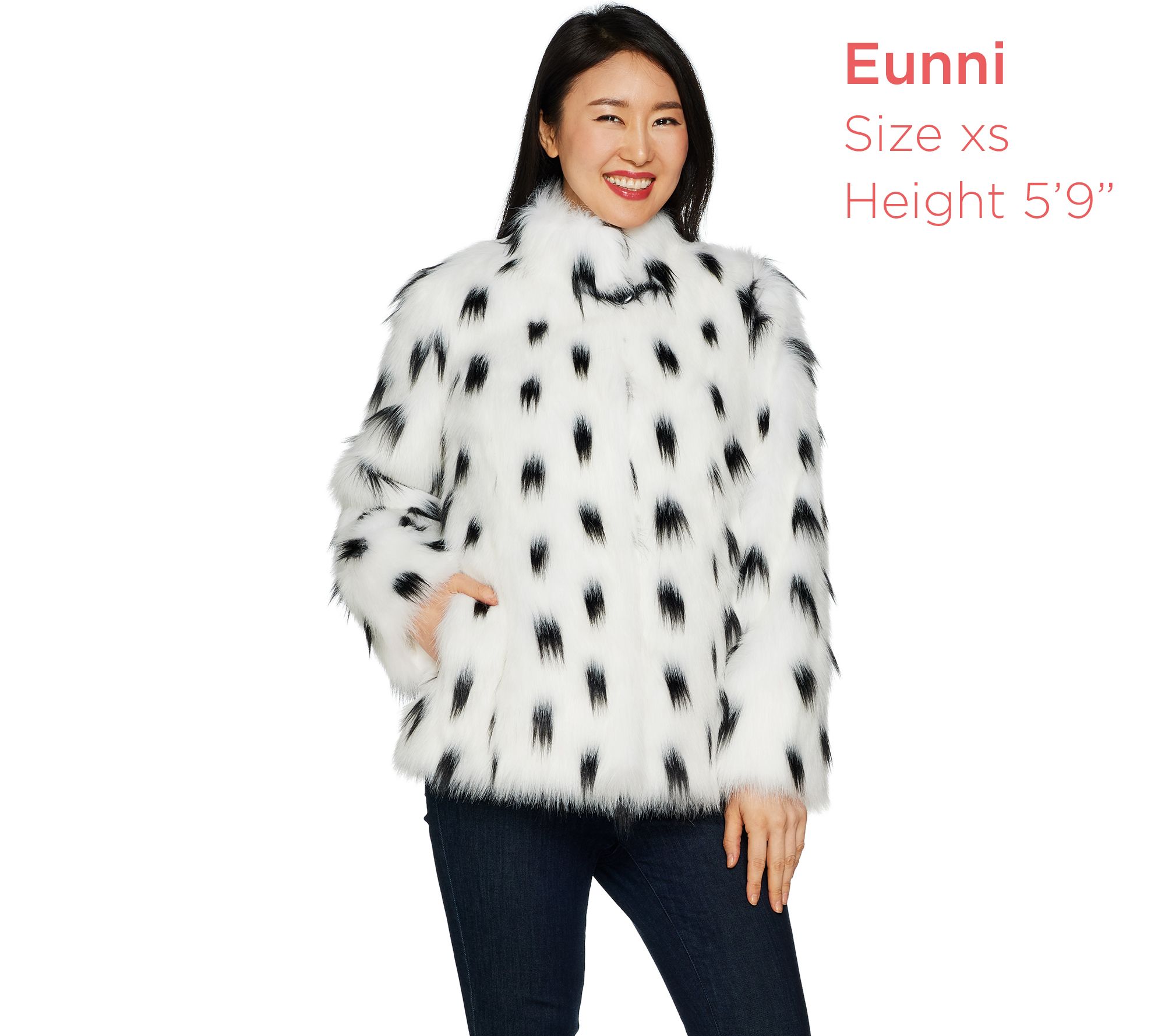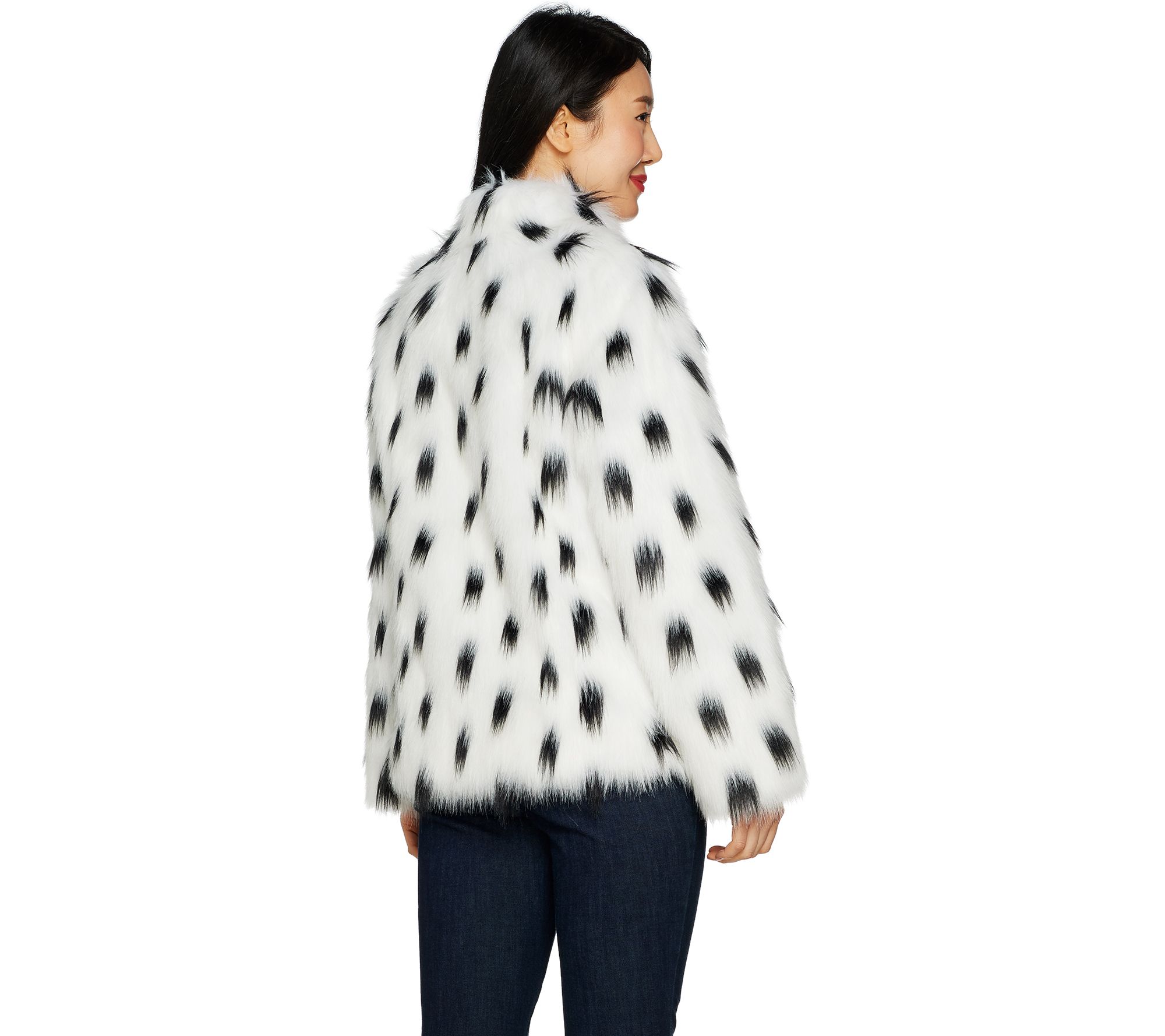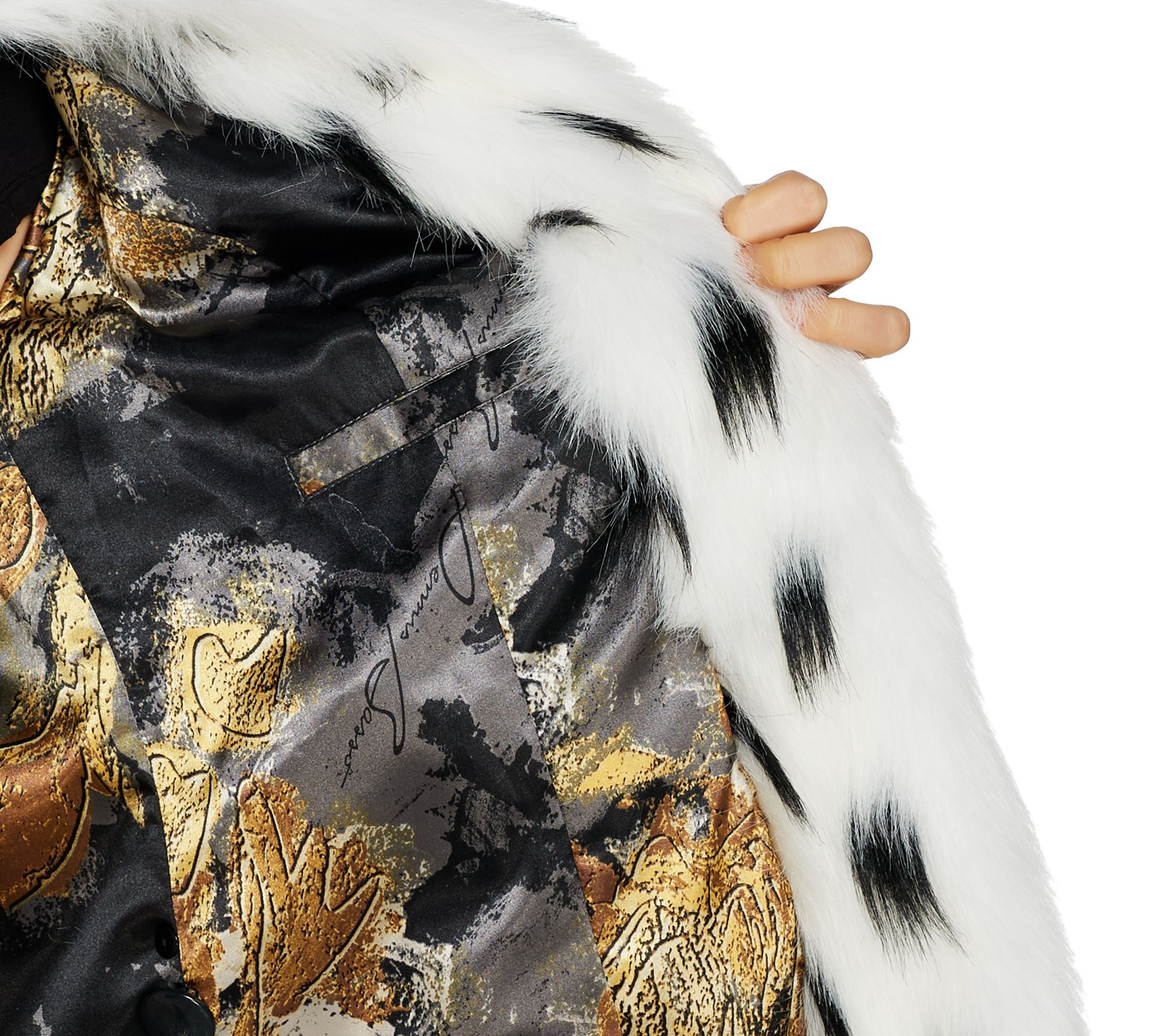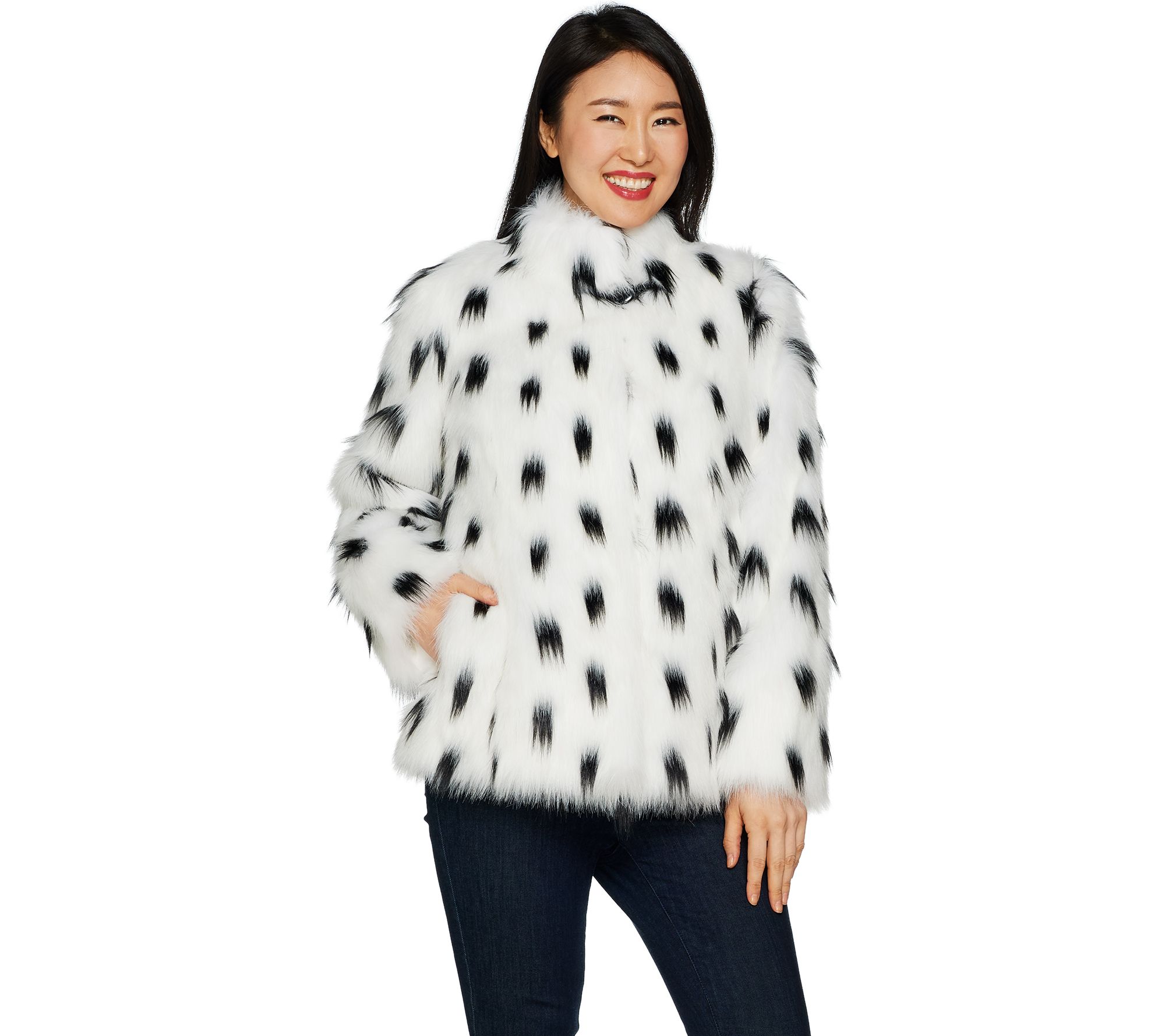 When sophistication shows its wild style, the results is this coat--complete with a stand colar and slash pockets. From Dennis Basso.