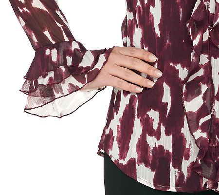 Blouse: sheer print, ruffle front and sleeve detail