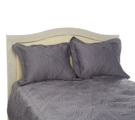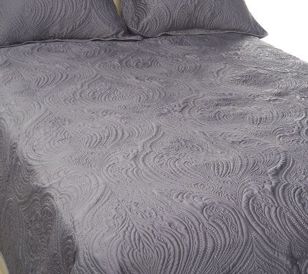 Designer decor. You don't have to confine your chic sense of style to your wardrobe. Extend it to the bedroom with this quilted matte sateen coverlet set, detailed with elegant paisley trapunto stitching. From Dennis Basso.