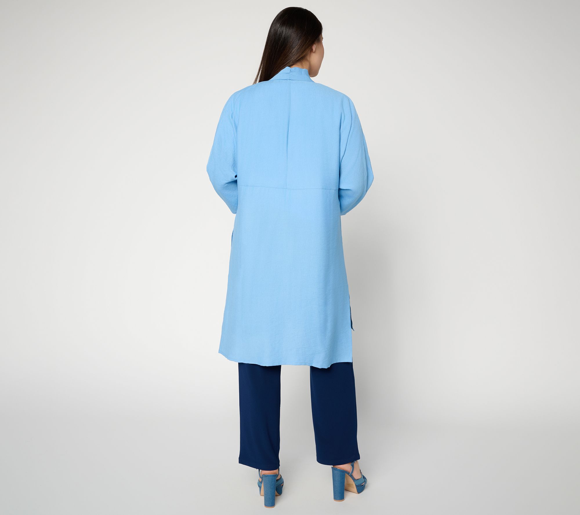 Love a stand-out finishing touch? This woven duster brings sophistication to any moment, from special dinners to a stroll downtown. Detailed embroidery at the shoulders and sleeves adds a fresh twist, while side slits and a hi-low hem create an easy-moving, graceful layer over your favorite tops and dresses. From Dennis Basso.