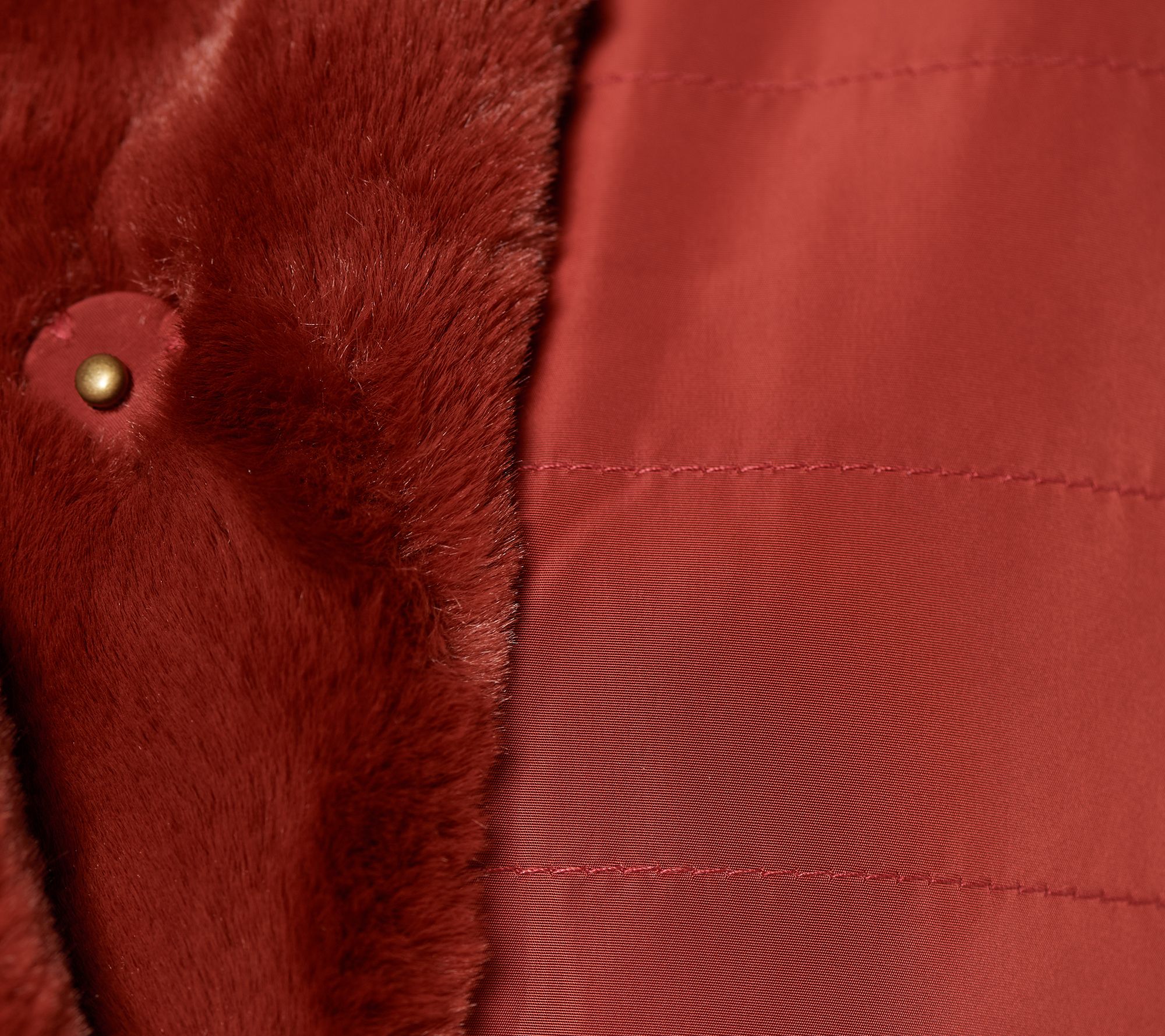 • Features: faux-mink, water resistant construction, stand-up collar, straight bottom hem, long sleeves