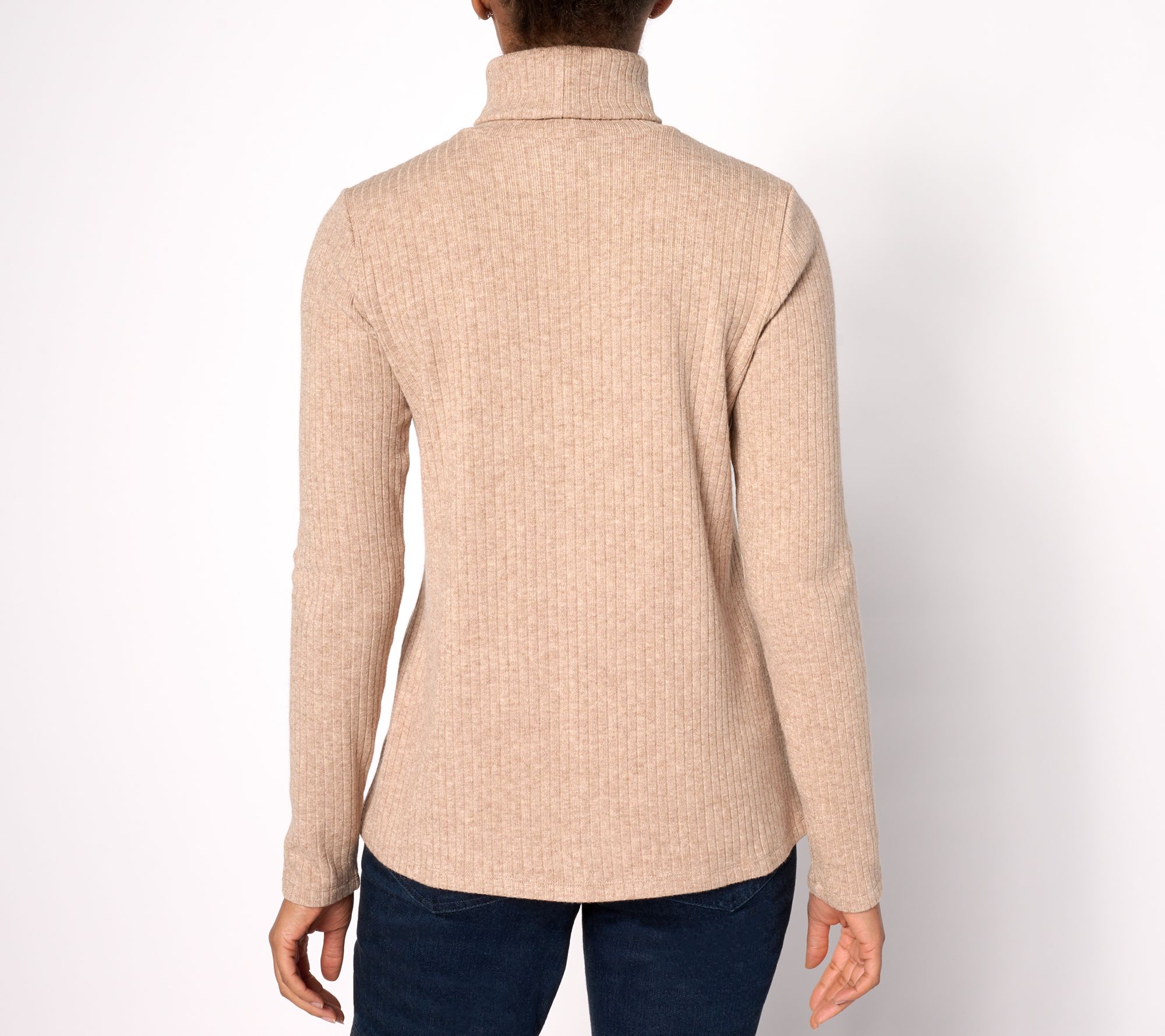 Bring your blazers and cardis forward into a new season with this easy-layering turtleneck in a soft rib. From Dennis Basso.