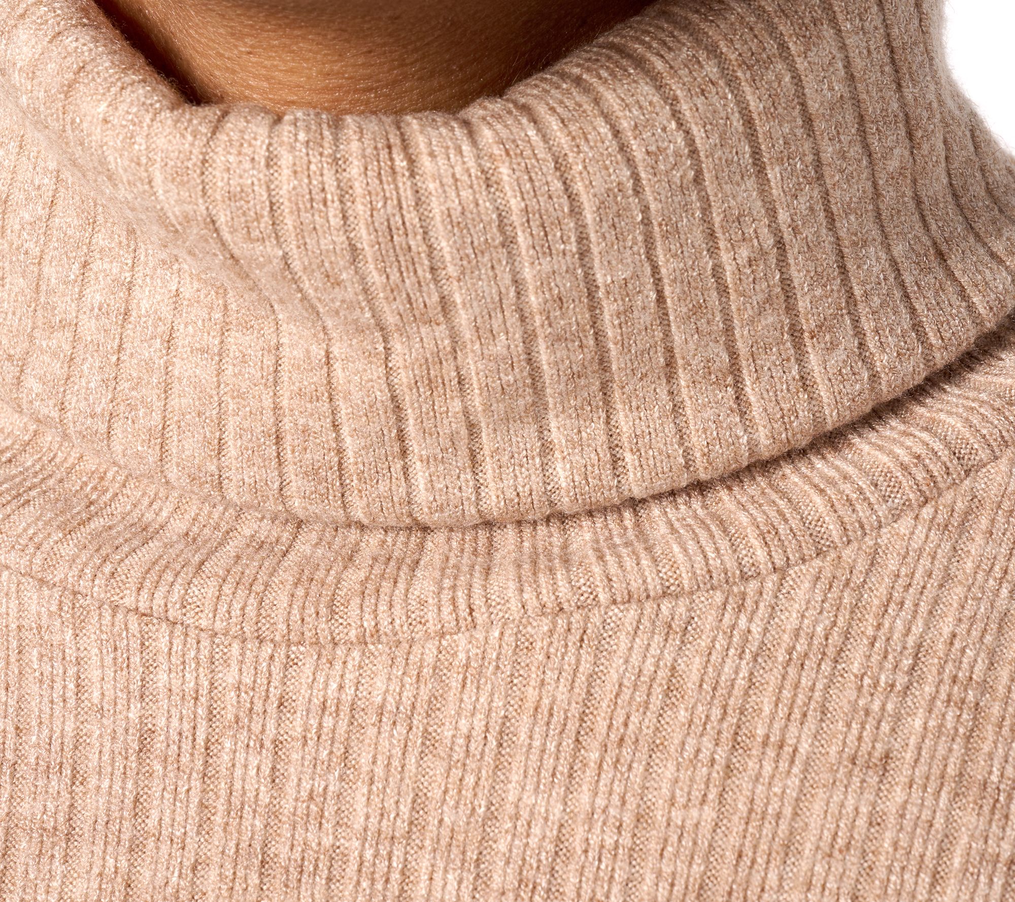 • Features: foldover turtleneck, long sleeves, straight bottom hem
