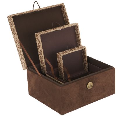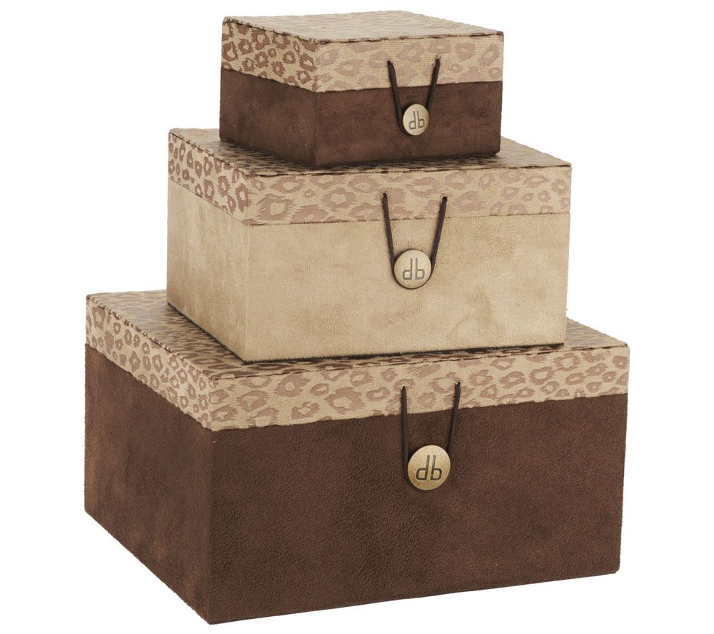 Stack and store in style. These three Dennis Basso boxes with button closures come in a coordinating colorway for decorating purposes. They'll work perfectly in a living area, kitchen, or bedroom to store remote controls, magazines, or other odds and ends. From Dennis Basso.