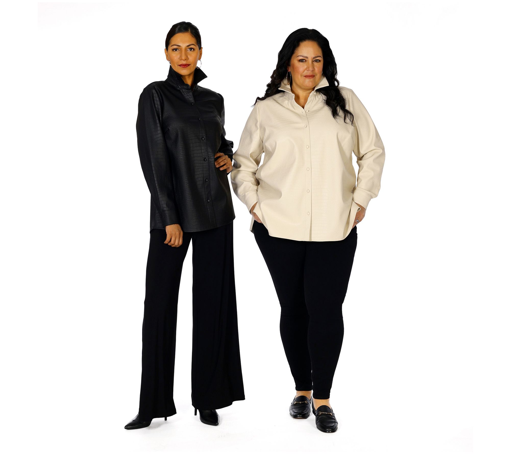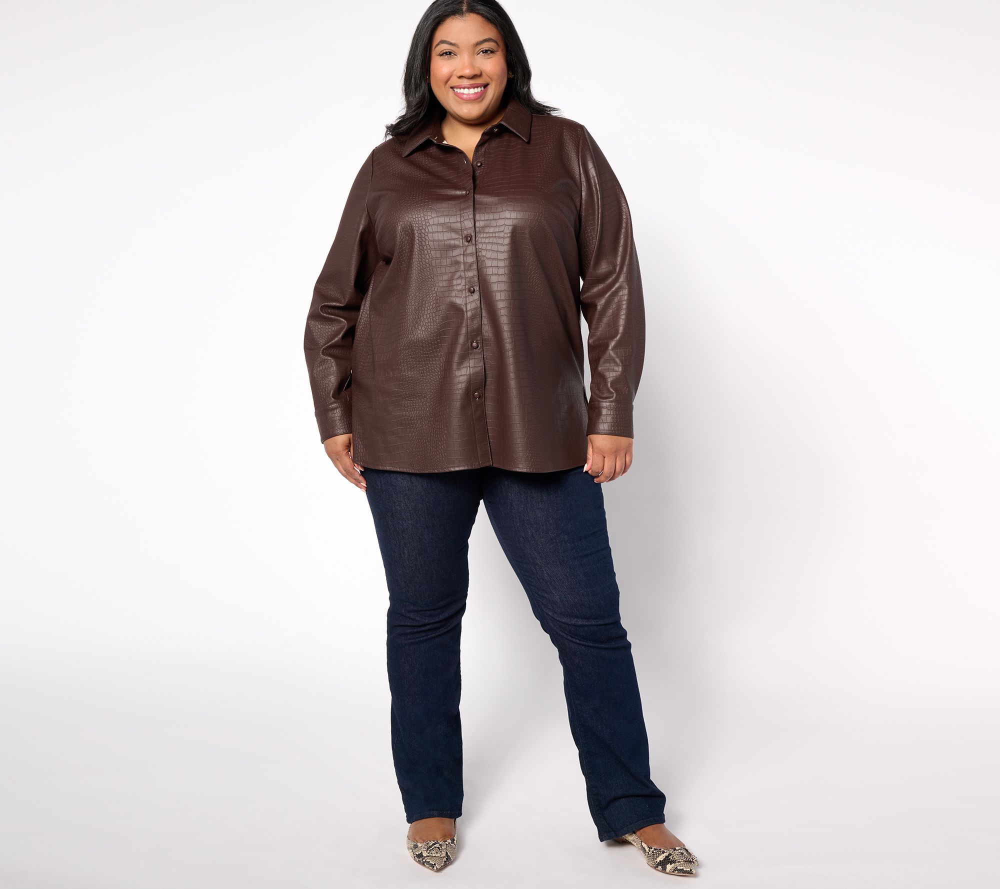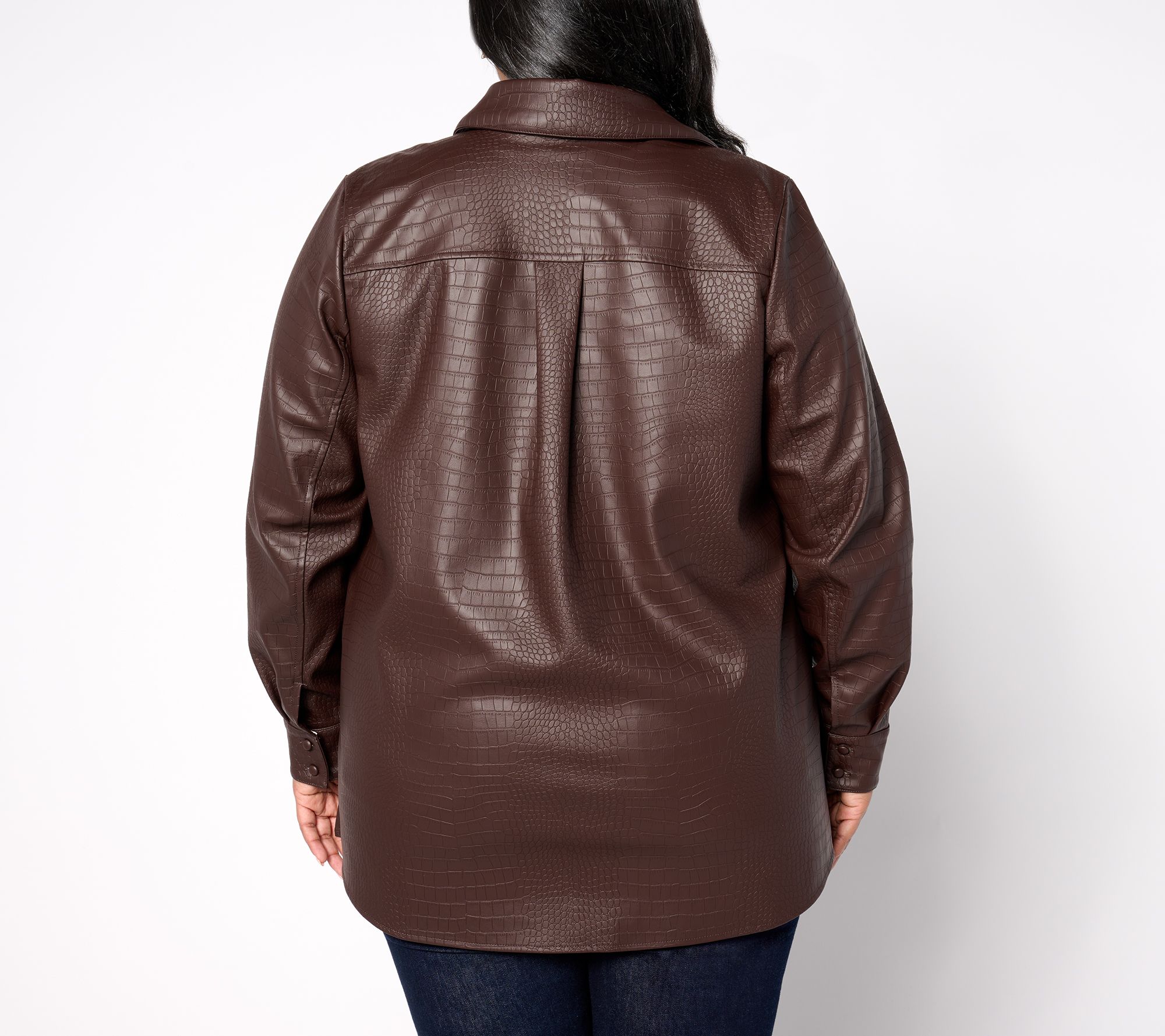 Your style evolution requires sophisticated pieces that do double (and triple) duty and wash easy. This textured faux-leather shirt checks alll the boxes! Unbutton over a tank and jeans for a chic lunch with the girls, mate to trousers for pro-polished office days, or slip on with your sleekest pants and sultriest heels for a night on the town. From Dennis Basso.