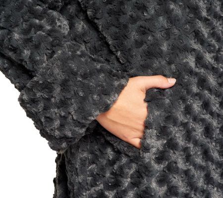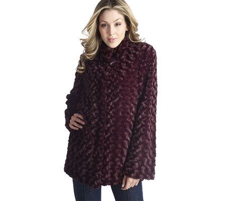 Budding beauty. Done in a flattering A-line silhouette, this faux fur coat is adorned with textured rosettes for a plush, pretty presentation. Velvet-lined pockets make for exceptionally cozy wear. From Dennis Basso.