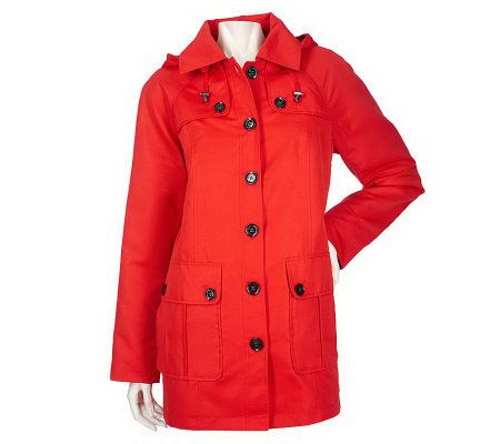 Maximum versatility. During the day, attach the drawstring hood for a sporty, casual look that works wonderfully over dark jeans, casual capris, or a cute skirt. At night, remove the hood and show off your simple, sophisticated style. No matter how you wear it, you're sure to turn heads in this high-end, go-anywhere coat. It's a timeless, all-season essential that keeps you fashionable year after year. From Dennis Basso.
