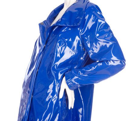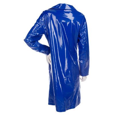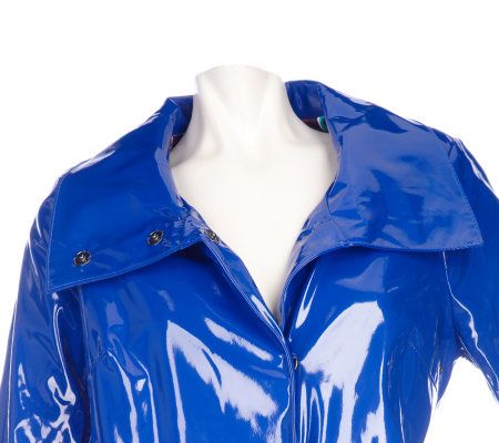 Dennis Basso Water Resistant Faux Patent Snap Front Coat